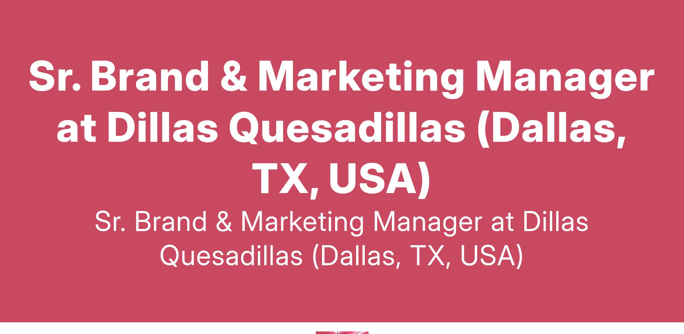 Sr. Brand & Marketing Manager at Dillas Quesadillas (Dallas, TX, USA)