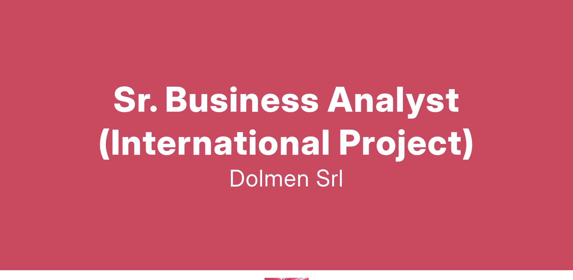 Dolmen S.r.l. società di consulenza informatica e sviluppo software nata da professionisti di decennale esperienza nel settore ICT, cerca per inserimento immediato nel suo organico: Senior Business Analyst (Progetto Internazionale) Stiamo cercando un Senior Business Analyst per un progetto internazionale dedicato all'anagrafica aziendale. internazionali per garantire l’allineamento tra requisiti di business e soluzioni tecniche. Requisiti • Almeno 3 anni di esperienza come Business Analyst o in ruoli simili. • Conoscenza approfondita del ciclo di vita aziendale e delle operazioni aziendali chiave. • Forte competenza in finanza aziendale e capacità di analisi strategica. • Inglese fluente , con dimostrata capacità di lavorare in contesti internazionali. Modalità di lavoro: Il lavoro sarà svolto principalmente da remoto, ma è richiesta la disponibilità per alcune trasferte iniziali a Monaco di Baviera. Completano il profilo: ottime doti relazionali e predisposizione al contatto con il cliente, capacità di lavorare in team, forte orientamento al risultato, flessibilità, entusiasmo nell'affrontare nuove sfide e attitudine all'apprendimento continuo. Invitiamo i candidati interessati a inviare il proprio curriculum vitae in formato Word, dettagliando accuratamente i ruoli ricoperti e le tecnologie utilizzate, completo di autorizzazione al trattamento dei dati personali, all'indirizzo email: Il presente annuncio è rivolto a entrambi i sessi, ai sensi delle leggi 903/77 e 125/91, e a persone di tutte le età e tutte le nazionalità, ai sensi dei decreti legislativi 215/03 e 216/03.