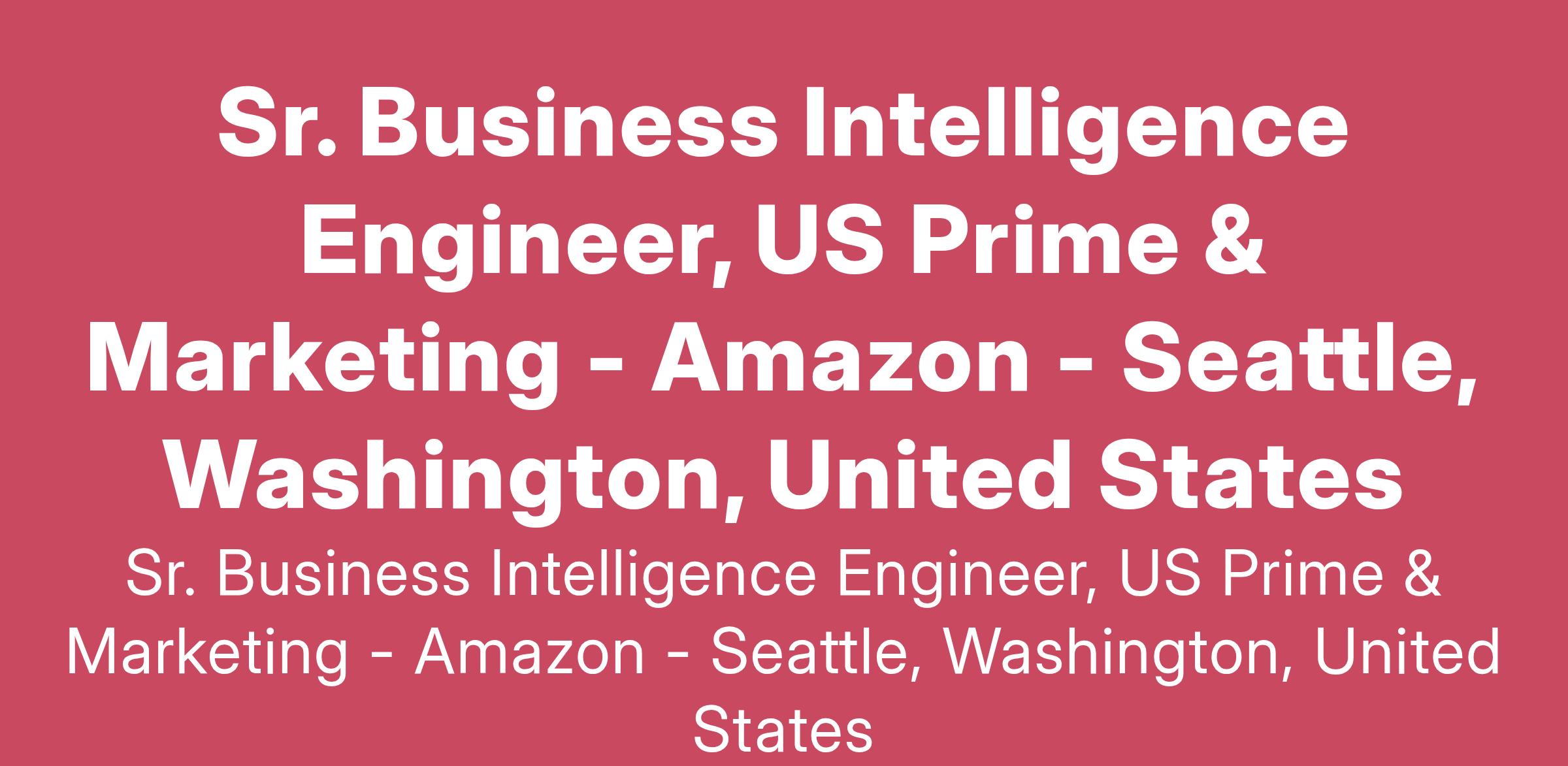 North American Stores Customer Insights is a new and growing team of Business Intelligence Engineers (BIE) and Business Analysts (BA) supporting all programs and products within the US Prime & Marketing Technology team. The US Prime team is focused on delivering the most engaging, satisfying, and loved membership program that drives the Amazon flywheel by growing the member base and accelerating engagement with Prime benefits. The Marketing Technology team helps customers discover and engage with new, popular, and relevant products across Amazon worldwide. We do this by combining technology, science, and innovation to build new customer-facing features and experiences alongside cutting-edge tools for marketers.