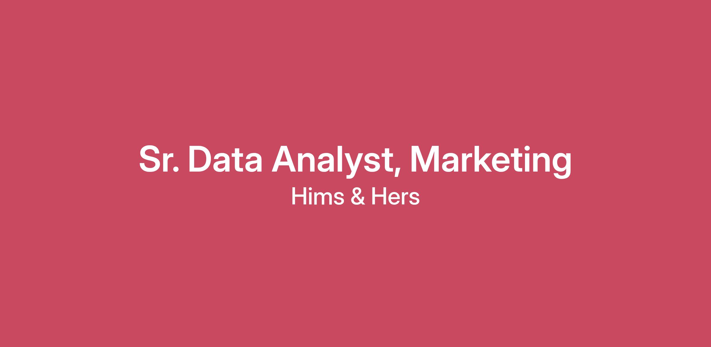 Hims & Hers is the leading health and wellness platform, on a mission to help the world feel great through the power of better health. We are redefining healthcare by putting the customer first and delivering access to care that is affordable, accessible, and personal, from diagnosis to treatment to delivery. No two people are the same, so we provide access to personalized care designed for results. By normalizing health & wellness challenges and innovating on their solutions, we’re making better health outcomes easier to achieve. Hims & Hers is a public company, traded on the NYSE under the ticker symbol “HIMS.” To learn more about the brand and offerings, you can visit hims.com/about and hims.com/how-it-works . For information on the company’s outstanding benefits, culture, and its talent-first flexible/remote work approach, see below and visit www.hims.com/careers-professionals.About the Role:We're looking for a Senior Analyst to join our Marketing Analytics team at Hims & Hers, you would be responsible for building the infrastructure necessary to analyze marketing campaign performance, serving as a technical expert on measurement and attribution strategies, and delivering insights and recommendations around business growth drivers. You will partner cross-functionally with Engineering, Product, and Marketing to drive acquisition and customer value growth for the business.You Will:Serve as a technical expert and end-to-end owner on marketing data sources, analytics infrastructure, data models, and analysis and measurement methodologiesOptimize complex data models that unify data across marketing channels and apply complex attribution modelsInvestigate the root causes of data anomalies and trendsDevelop and automate dashboards and reporting that are critical to business stakeholder decision-makingDevelop, maintain, and scale in-house multi-touch attribution (MTA) models and media mix models (MMM)Design, execute. and analyze A/B and incrementality tests across marketing campaigns to drive strategic decision-makingPresent complex topics to a wide range of audiencesEnable and evangelize self-service analytics through which we empower stakeholders to explore data and perform high-level analysisYou Have:5-7+ years of experience as an analyst, writing complex queries, developing in business intelligence tools, performing analysis in Python and/or R, summarizing insights, and communicating with senior stakeholdersBachelor's degree in Business, Marketing, Computer Science, Engineering, or related field, or relevant years of work experienceStrong SQL and Python skills are a requirement; must be able to understand and author complex SQL queries, design database schemas, and optimize query performance while minimizing costsExperience with DBT for data modeling and orchestrationExperience using Looker for business intelligence and developing a semantic layer in LookML is strongly preferredAdvanced Python skills for data manipulation, analysis, and modeling: experience using Jupyter notebooks, pandas, scikit-learn, etc.An understanding of the marketing business domain, particularly applications such as multi-touch attribution (MTA), and Marketing Mix Modeling (MMM)Experience with website analytics (e.g. Amplitude, Google Analytics, etc.) and app analytics tools (e.g. Branch, AppsFlyer, etc.)Familiarity with statistical experimentation and A/B testing principlesResults-oriented with strong project management and communications skillsOur Benefits (there are more but here are some highlights):Competitive salary & equity compensation for full-time rolesUnlimited PTO, company holidays, and quarterly mental health daysComprehensive health benefits including medical, dental & vision, and parental leaveEmployee Stock Purchase Program (ESPP)401k benefits with employer matching contributionOffsite team retreatsWe are committed to building a workforce that reflects diverse perspectives and prioritizes ethics, wellness, and a strong sense of belonging. If you're excited about this role, we encourage you to apply—even if you're not sure if your background or experience is a perfect match.Hims considers all qualified applicants for employment, including applicants with arrest or conviction records, in accordance with the San Francisco Fair Chance Ordinance, the Los Angeles County Fair Chance Ordinance, the California Fair Chance Act, and any similar state or local fair chance laws.It is unlawful in Massachusetts to require or administer a lie detector test as a condition of employment or continued employment. An employer who violates this law shall be subject to criminal penalties and civil liability.Hims & Hers is committed to providing reasonable accommodations for qualified individuals with disabilities and disabled veterans in our job application procedures. If you need assistance or an accommodation due to a disability, please contact us at accommodations@forhims.com and describe the needed accommodation. Your privacy is important to us, and any information you share will only be used for the legitimate purpose of considering your request for accommodation. Hims & Hers gives consideration to all qualified applicants without regard to any protected status, including disability. Please do not send resumes to this email address.To learn more about how we collect, use, retain, and disclose Personal Information, please visit our Global Candidate Privacy Statement.