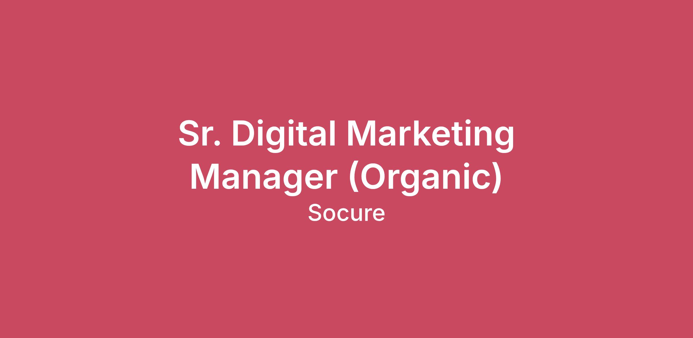 Why Socure?Socure is building the identity trust infrastructure for the digital economy — verifying 100% of good identities in real time and stopping fraud before it starts. The mission is big, the problems are complex, and the impact is felt by businesses, governments, and millions of people every day.We hire people who want that level of responsibility. People who move fast, think critically, act like owners, and care deeply about solving customer problems with precision. If you want predictability or narrow scope, this won’t be your place. If you want to help build the future of identity with a team that holds a high bar for itself — keep reading.Job OverviewThe Senior Digital Marketing Manager (Organic) leads the planning, execution, and optimization of advanced digital marketing initiatives to drive Socure’s brand awareness, lead generation, and revenue growth. This role collaborates with cross-functional teams—including content, design, product, and analytics—to deliver data-driven campaigns across digital channels, ensuring alignment with business objectives and measurable impact. The Senior Digital Marketing Manager is expected to demonstrate expertise in digital marketing strategy, analytics, and leadership, while fostering a culture of innovation and continuous improvement.Job ResponsibilitiesDevelop and execute comprehensive digital marketing strategies across channels such as paid search, display, social media, email, and web.Lead the planning, launch, and optimization of digital campaigns to support product launches, demand generation, and brand initiatives.Analyze campaign performance data, generate insights, and implement optimizations to maximize ROI and achieve KPIs.Collaborate with content, design, and product teams to ensure digital assets are compelling, on-brand, and tailored to target audiences.Manage digital marketing budgets, allocate resources, and oversee relationships with external vendors and platforms.Stay current on digital marketing trends, technologies, and best practices, and recommend innovative approaches.Mentor and guide junior digital marketing team members, sharing expertise and fostering professional growth.Ensure all digital marketing activities adhere to brand guidelines, compliance standards, and data privacy regulations.Job RequirementsBachelor’s degree in Marketing, Communications, Business, or a related field.4–6 years of experience in digital marketing, with proven ability to lead integrated campaigns and manage budgets independently.Advanced expertise in digital marketing channels, tools, and analytics platforms (e.g., Google Ads, LinkedIn, Meta, Google Analytics, marketing automation).Strong analytical skills with the ability to interpret data, generate insights, and drive data-informed decisions.Project management and organizational abilities, with experience leading complex, multi-channel campaigns.Excellent written and verbal communication skills.Creativity, adaptability, and a proactive approach to problem-solving.Collaboration and relationship-building skills across cross-functional teams.Leadership and mentoring abilities.Socure is an equal opportunity employer that values diversity in all its forms within our company. We do not discriminate based on race, religion, color, national origin, gender, sexual orientation, age, marital status, veteran status, or disability status.If you need an accommodation during any stage of the application or hiring process—including interview or onboarding support—please reach out to your Socure recruiting partner directly.Follow Us!YouTube | LinkedIn | X (Twitter) | Facebook