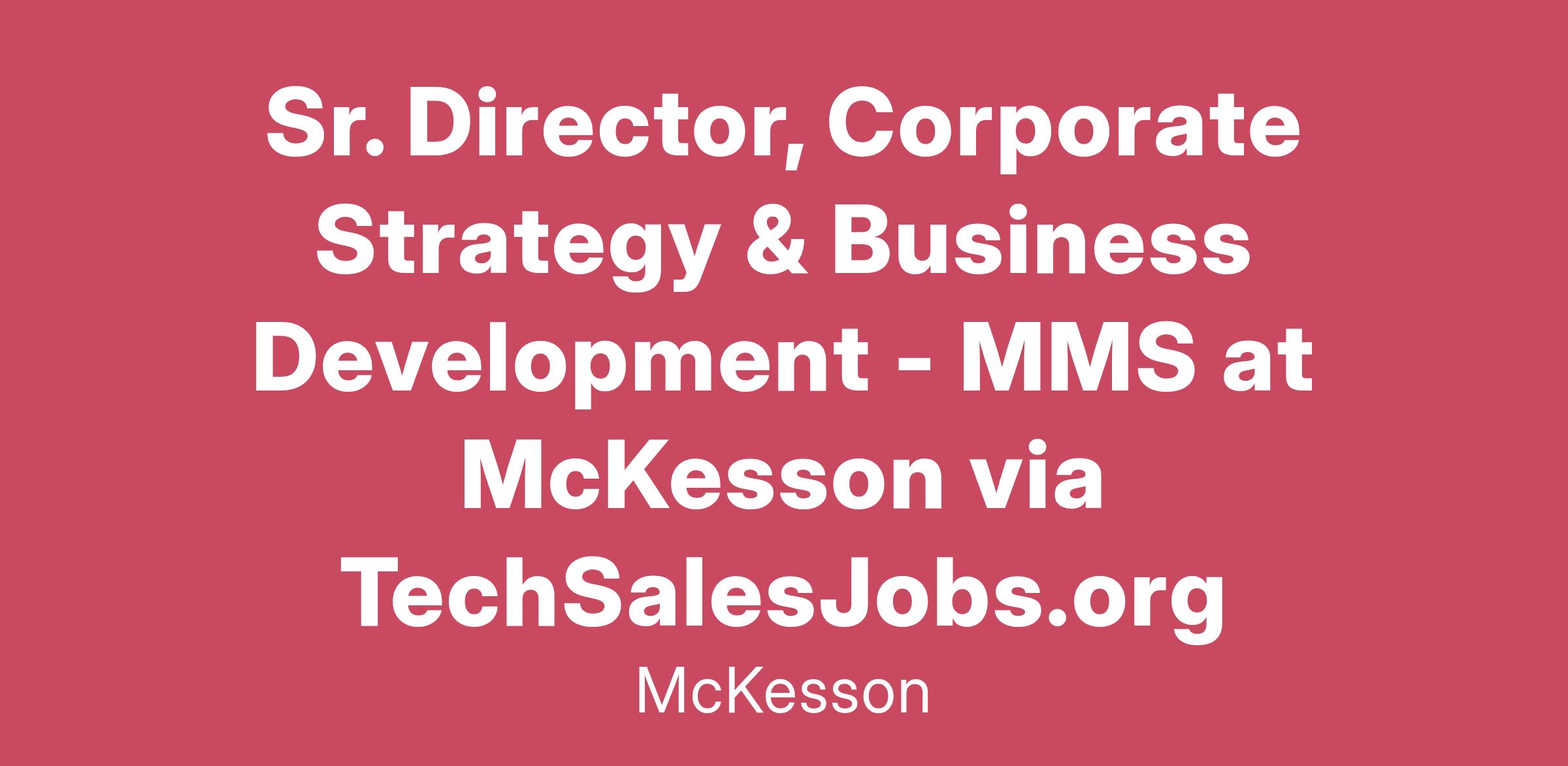 The McKesson Corporate Strategy and Business Development organization is seeking to add a Senior Director to its existing team, which is responsible for planning, delivering, and implementing high-priority strategic projects that advance the organization’s competitive position. In this challenging and highly visible role, this individual will support the MMS business unit in pulling through the enterprise’s broad strategy into the business unit’s reality. Our team conducts projects related to evaluating and incubating new growth opportunities and solutions, partnering with external stakeholders, and optimizing and growing our existing businesses. This role’s leadership will advance McKesson’s objective to achieve better business health for our customers and better care for all.
