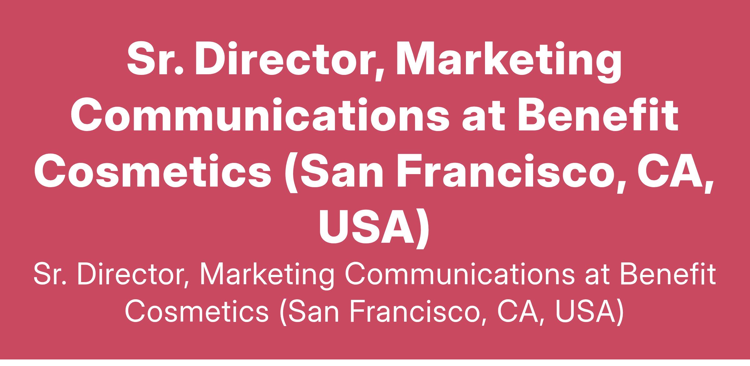 Sr. Director, Marketing Communications at Benefit Cosmetics (San Francisco, CA, USA)