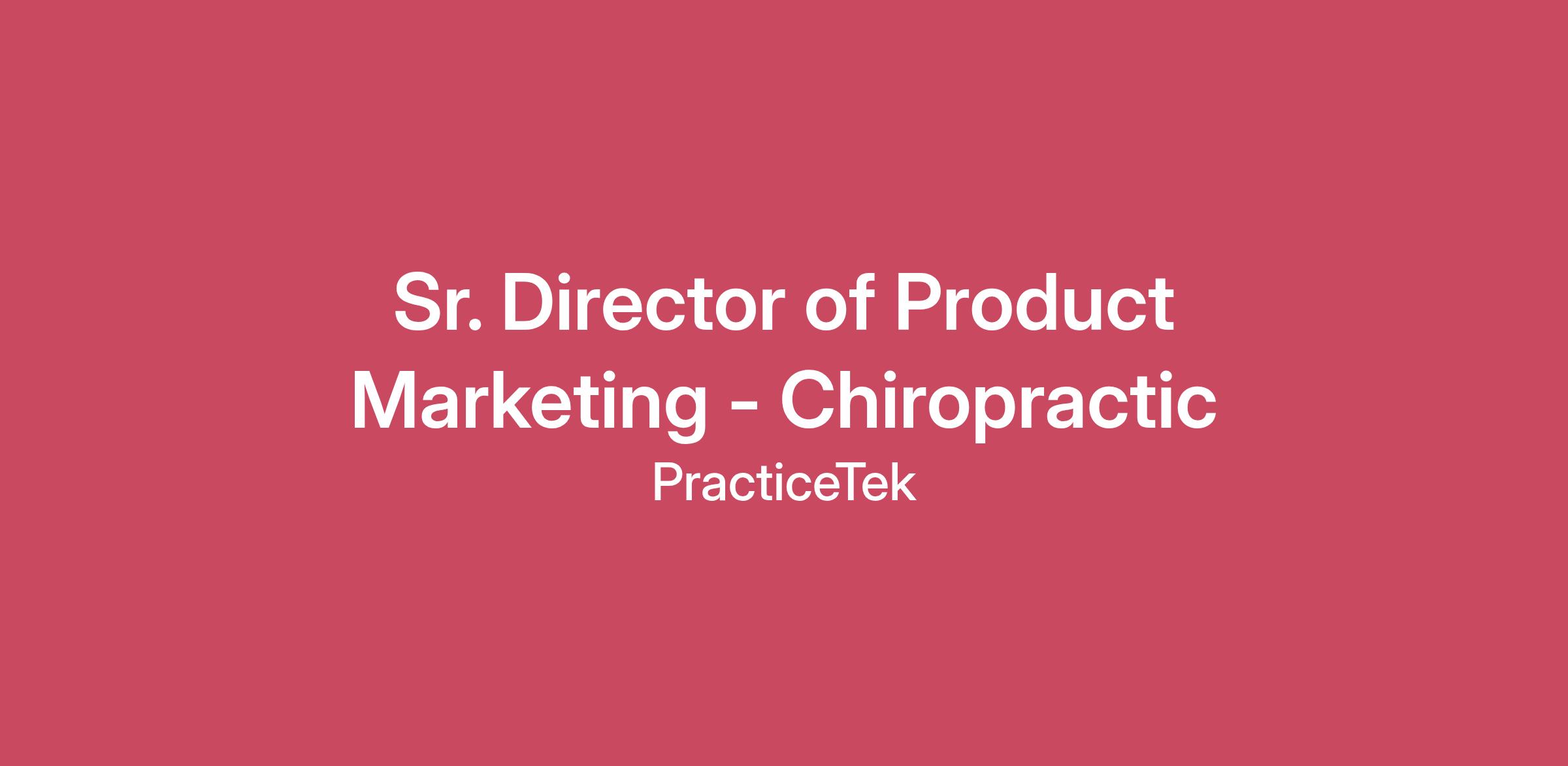 Title: Sr. Director of Product Marketing - ChiropracticTeam: MarketingLocation: RemoteReports To: VP of MarketingAbout PracticeTekStop scrolling-your dream job might just be here! At PracticeTek, we don’t do ordinary, we do bold ideas, big impact, and endless opportunities to grow. Imagine working with teammates who celebrate your wins, challenge you to think bigger, and cheer you on every step of the way. Imagine building solutions that actually change lives and reshape how healthcare works. That’s the vibe here: high-energy, high-impact, and 100% human. Ready to jump in? Let’s go!We’re on a mission to revolutionize healthcare practices effortlessly and we live out our brand promise every day: being the Trusted Partner in retail healthcare. PracticeTek is one of the largest retail-healthcare tech providers in North America, offering everything a practitioner would need, from pre-encounter workflows to practice management, analytics, digital intake forms, marketing tools, EHRs, and payment systems, for a whopping 40,000+ clinics worldwide. Over the years, we’ve brought together the best-in-class platforms that serve the Chiropractic, Wellbeing, Vision and Dental providers and their patients; and we are united by one mission, to revolutionize retail healthcare practices effortlessly. Here, you’ll have the flexibility to contribute across multiple brands, each offering a unique path for growth. Whether you’re building products, supporting customers, or driving strategy, your journey with PracticeTek is full of opportunity.We believe in showing up with consistent care, staying always ahead, keeping our approach market-in, making every experience feel effortless, owning it openly, and striving to do right in every decision. These aren’t just words; they’re how we live, work, and make an impact together.At PracticeTek, you’ll get to:Shape the future of healthcare with technology solutions that are always evolving to meet real-world needs.Team up with passionate, talented people who care deeply about patients, providers, and making a difference.See your impact firsthand by helping practices deliver care that’s simpler, smarter, and better for everyone.Grow your career and your skills in an environment that celebrates curiosity, collaboration, and continuous development.Why You’ll Love It HereAs part of the TekTribe, you’ll enjoy:Comprehensive health, dental, and vision coverage optionsWellness benefits that support lifestyle, behavioral health, and overall wellbeingFlexible paid time off, sick time, and 10 company-paid holidays401(k) plan with company match to help you build your futureCulture Committee driving initiatives that spark connection, fun, and belongingA workplace powered by innovation, collaboration, and energy every dayWhat You’ll DoHere’s how you’ll help us bring our mission to life and show up as a Trusted Partner:Strategic Market LeadershipRefine and revise ICPs, market segmentation, and buyer personas based on data, customer insights, and TAM/SAM analysis.Own positioning and messaging that clearly differentiates our solutions in a competitive market and resonates across all buyer stages.Partner with the Market Leader (Product), CPO, and Sales Leaders to drive portfolio strategy, roadmap alignment, and revenue acceleration, informing profitability optimization.Own category Brand activation, in-market customer programs in partnership with Customer Support and Industry Press/Publications to drive thought leadership and inform market insightsGo-to-Market ExcellenceLead end-to-end GTM for new products, features, and packages—from business case collaboration with Product to launch and through post-launch optimizationDevelop and maintain value propositions, pricing & packaging strategies, and competitive differentiation frameworks.Ensure GTM readiness across product, sales, demand gen, customer success, and channel partners.Design Customer Experience (CX) and Customer Journey leading cross-functional teams to deliver on a best-in-class brand experience at every touchpoint.Revenue & Growth PartnershipPartner with performance marketing (demand generation) teams to design and execute integrated campaigns that deliver pipeline growth at compelling CAC & CLTV.Collaborate with sales enablement to arm the field with and iterate on compelling tools, stories, and objection-handling content to accelerate close rates.Monitor and report portfolio-level performance—ARR, ACV, MRR, Upsell, Downsell, Churn, and gross margin—identifying trends and proactively effecting high impact programs that deliver to business goals.Customer & Market IntelligenceContribute to competitive intelligence programs that track market shifts, competitor moves, and pricing trends in collaboration with Product.Leverage customer insights (NPS, win/loss analysis, churn data) to inform roadmap, messaging, and retention plays.Serve as the voice of the market and customer to internal stakeholders, ensuring our offerings remain relevant and differentiated by segment/persona.How Success is MeasuredHere’s how we’ll know you’re making an impact and raising the bar:Successful launch of 3-4 high-impact products or features, delivering measurable revenue impact.Demonstrable improvement and command of CAC efficiency and pipeline contribution from product-led campaigns.Clear, data-driven positioning and segmentation frameworks in place and adopted across the org, reflected in martech activations (HubSpot, SFDC, ZoomInfo).Measurable lift in sales win rates and product attach rates.A trusted seat at the table with the BU leadership team, influencing portfolio, pricing, and growth decisions.What You Bring Your unique talents are what make you shine. For this role, success looks like:8–12+ years in B2B product marketing, with 5+ years in a leadership role driving GTM strategy for high-growth portfolios.Proven success in SBM or mid-market SaaS—healthcare tech experience strongly preferredTrack 