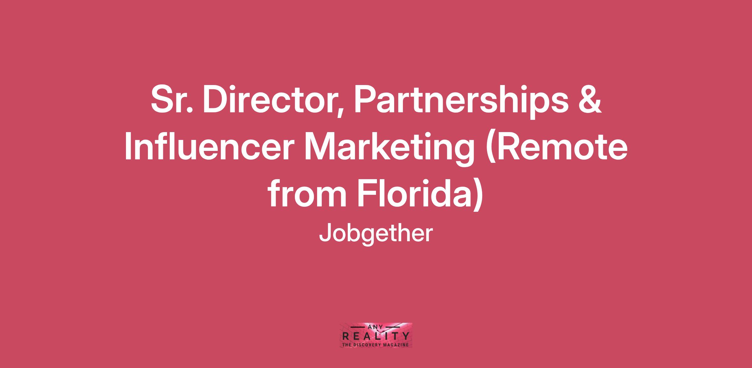 This position is posted by Jobgether on behalf of a partner company. We are currently looking for a Sr. Director, Partnerships & Influencer Marketing in Florida.This senior leadership role is responsible for building and scaling an integrated global strategy across strategic partnerships, sponsorships, and influencer marketing to drive brand awareness, trust, and customer acquisition. You will lead a newly unified team overseeing paid influencers, affiliate ambassadors, and high-impact sponsorship activations. Operating in a fast-paced, performance-driven environment, this role balances long-term brand equity with measurable growth outcomes. You will manage high-profile talent relationships, negotiate complex partnerships, and collaborate closely with cross-functional teams across marketing, growth, legal, and finance. The position offers broad ownership, executive visibility, and the opportunity to shape how partnerships and influence power brand storytelling at scale. This is a remote role with national scope and global impact.\nAccountabilities:Define and execute an integrated Partnerships and Influencer Marketing strategy aligned with brand positioning and growth objectives.Lead and optimize paid influencer, affiliate ambassador, and sponsorship programs to drive awareness, credibility, and acquisition.Oversee high-profile talent relationships, including scouting, contract negotiations, performance incentives, and usage rights.Develop and manage long-term sponsorship roadmaps across sports, wellness, medical, and cultural partnerships.Ensure activations are executed across channels with clear measurement frameworks and ROI tracking.Manage and mentor senior team leaders, fostering strong collaboration, accountability, and professional development.Partner cross-functionally with Growth, Creative, PR, Sales, Legal, Finance, and Analytics teams to ensure integrated execution.Establish clear planning, briefing, and review cadences to maintain operational excellence and strategic alignment.Requirements:Bachelor’s degree in marketing, communications, or a related field.12+ years of experience in partnerships, influencer marketing, sports or celebrity marketing, or brand strategy, ideally within consumer health, wellness, or lifestyle sectors.Proven track record negotiating high-profile talent, sponsorship, and partnership agreements.Strong network and credibility across sports, entertainment, and or healthcare ecosystems.Demonstrated ability to balance brand storytelling with performance-driven outcomes and measurable ROI.Experience leading cross-functional initiatives and managing senior-level direct reports.Strategic, creative, and analytical mindset with strong relationship management skills.Comfortable navigating complex stakeholder environments including agents, leagues, and associations.Benefits:Competitive salary range of $150,000 to $175,000 annually.100 percent company-paid medical, dental, and vision insurance for employees.Company-paid life insurance and short- and long-term disability coverage.401k plan with employer matching contributions up to 4 percent.Paid time off, volunteer time off, and holiday leave.Gym membership reimbursement and monthly product allowance.Ongoing training, professional development, and career growth opportunities.Fully remote work environment.\nWhy Apply Through Jobgether?We use an AI-powered matching process to ensure your application is reviewed quickly, objectively, and fairly against the role's core requirements. Our system identifies the top-fitting candidates, and this shortlist is then shared directly with the hiring company. The final decision and next steps (interviews, assessments) are managed by their internal team.We appreciate your interest and wish you the best!Data Privacy Notice: By submitting your application, you acknowledge that Jobgether will process your personal data to evaluate your candidacy and share relevant information with the hiring employer. This processing is based on legitimate interest and pre-contractual measures under applicable data protection laws (including GDPR). You may exercise your rights (access, rectification, erasure, objection) at any time. #LI-CL1