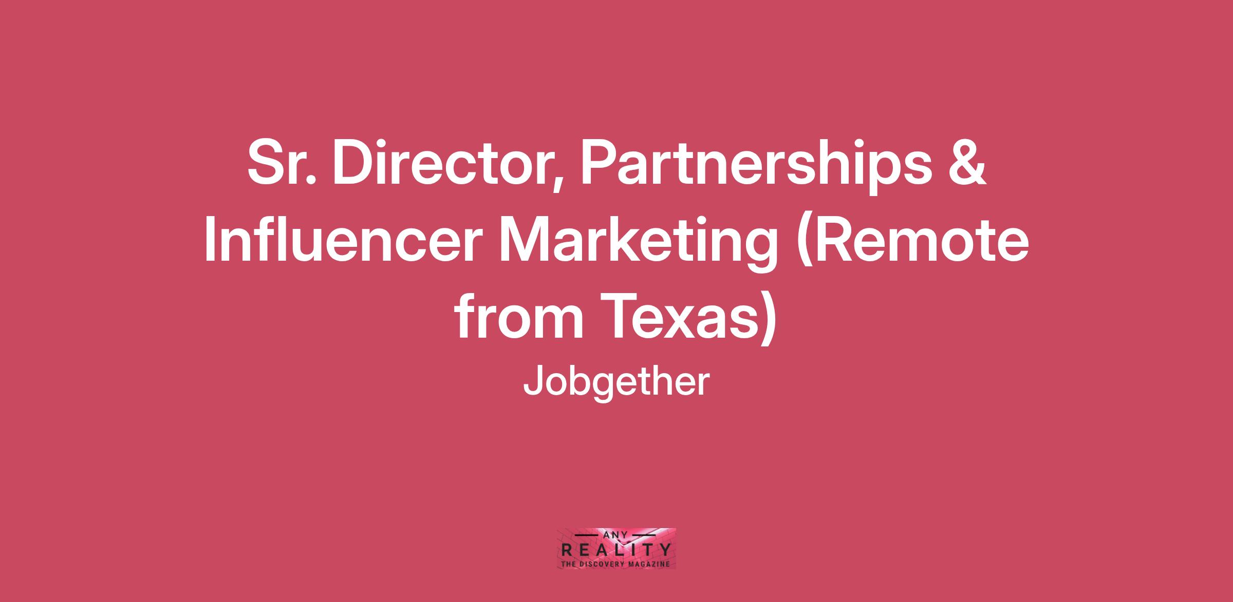 This position is posted by Jobgether on behalf of a partner company. We are currently looking for a Sr. Director, Partnerships & Influencer Marketing in Texas.This senior leadership role is responsible for building and scaling an integrated global strategy across strategic partnerships, sponsorships, and influencer marketing to drive brand awareness, trust, and customer acquisition. You will lead a newly unified team overseeing paid influencers, affiliate ambassadors, and high-impact sponsorship activations. Operating in a fast-paced, performance-driven environment, this role balances long-term brand equity with measurable growth outcomes. You will manage high-profile talent relationships, negotiate complex partnerships, and collaborate closely with cross-functional teams across marketing, growth, legal, and finance. The position offers broad ownership, executive visibility, and the opportunity to shape how partnerships and influence power brand storytelling at scale. This is a remote role with national scope and global impact.\nAccountabilities:Define and execute an integrated Partnerships and Influencer Marketing strategy aligned with brand positioning and growth objectives.Lead and optimize paid influencer, affiliate ambassador, and sponsorship programs to drive awareness, credibility, and acquisition.Oversee high-profile talent relationships, including scouting, contract negotiations, performance incentives, and usage rights.Develop and manage long-term sponsorship roadmaps across sports, wellness, medical, and cultural partnerships.Ensure activations are executed across channels with clear measurement frameworks and ROI tracking.Manage and mentor senior team leaders, fostering strong collaboration, accountability, and professional development.Partner cross-functionally with Growth, Creative, PR, Sales, Legal, Finance, and Analytics teams to ensure integrated execution.Establish clear planning, briefing, and review cadences to maintain operational excellence and strategic alignment.Requirements:Bachelor’s degree in marketing, communications, or a related field.12+ years of experience in partnerships, influencer marketing, sports or celebrity marketing, or brand strategy, ideally within consumer health, wellness, or lifestyle sectors.Proven track record negotiating high-profile talent, sponsorship, and partnership agreements.Strong network and credibility across sports, entertainment, and or healthcare ecosystems.Demonstrated ability to balance brand storytelling with performance-driven outcomes and measurable ROI.Experience leading cross-functional initiatives and managing senior-level direct reports.Strategic, creative, and analytical mindset with strong relationship management skills.Comfortable navigating complex stakeholder environments including agents, leagues, and associations.Benefits:Competitive salary range of $150,000 to $175,000 annually.100 percent company-paid medical, dental, and vision insurance for employees.Company-paid life insurance and short- and long-term disability coverage.401k plan with employer matching contributions up to 4 percent.Paid time off, volunteer time off, and holiday leave.Gym membership reimbursement and monthly product allowance.Ongoing training, professional development, and career growth opportunities.Fully remote work environment.\nWhy Apply Through Jobgether?We use an AI-powered matching process to ensure your application is reviewed quickly, objectively, and fairly against the role's core requirements. Our system identifies the top-fitting candidates, and this shortlist is then shared directly with the hiring company. The final decision and next steps (interviews, assessments) are managed by their internal team.We appreciate your interest and wish you the best!Data Privacy Notice: By submitting your application, you acknowledge that Jobgether will process your personal data to evaluate your candidacy and share relevant information with the hiring employer. This processing is based on legitimate interest and pre-contractual measures under applicable data protection laws (including GDPR). You may exercise your rights (access, rectification, erasure, objection) at any time. #LI-CL1