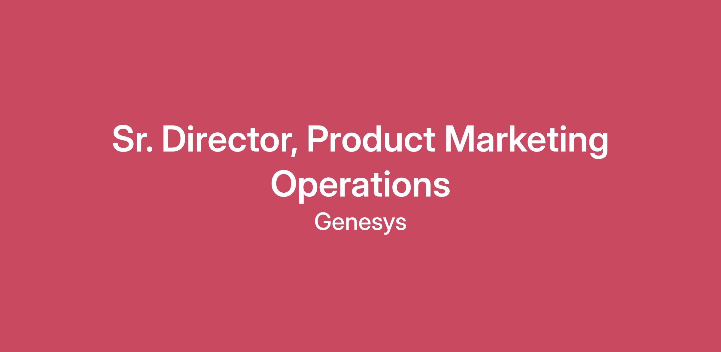Genesys empowers organizations of all sizes to improve loyalty and business outcomes by creating the best experiences for their customers and employees. Through Genesys Cloud, the AI-powered Experience Orchestration platform, organizations can accelerate growth by delivering empathetic, personalized experiences at scale to drive customer loyalty, workforce engagement, efficiency and operational improvements.We employ more than 6,000 people across the globe who embrace empathy and cultivate collaboration to succeed. And, while we offer great benefits and perks like larger tech companies, our employees have the independence to make a larger impact on the company and take ownership of their work. Join the team and create the future of customer experience together.Genesys is looking for a strategic and experienced leader to establish, lead and grown a new Product Marketing Operations function. Reporting to the SVP of Product Marketing, you will join the product marketing leadership team and be a key contributor, playing a critical role in shaping how we bring products and major GTM initiatives to market, as well as ensuring delivering of timely and regular market insights to ensure GTM success. This role requires a proven leader with deep operational expertise, a track record of building and leading high-performing teams, as well as the ability to collaborate closely with executive and cross-functional stakeholders. You will build and lead a global team responsible for launch operations, project management, and product marketing research—establishing a foundation for operational excellence. Key Responsibilities Lead and grow a cross-functional team spanning project management, launch operations, and market research Design, implement, and scale processes and best practices that support best in class execution and cross-functional alignment Drive complex, global product marketing initiatives from planning through execution—ensuring they are delivered on time, within scope, and aligned to strategic goals Oversee go-to-market (GTM) readiness for product launches in close partnership with Product Marketing, Product Management, Enablement, and Sales Deliver clear, frequent communication to stakeholders at all levels, including updates on project milestones and actionable insights from market, customer, and competitive research Build a data-driven function that uses market intelligence to inform strategy, prioritize opportunities, and improve GTM outcomes Foster a high-performing, collaborative, and inclusive team culture, with a focus on talent development and continuous improvement Partner closely with executive leadership across marketing, product, and sales to support business objectives and ensure operational alignment Required Qualifications 10+ years of experience in marketing or product operations, including managing global project management teams in SaaS or technology environments Demonstrated success in leading large-scale, cross-functional initiatives and product launches Proven ability to lead through influence and build partnerships across diverse global teams Excellent organizational, communication, and executive engagement skills Track record of managing and mentoring high-performing teams PMP or equivalent project management certification (mandatory) Familiarity with customer experience (CX) platforms and AI technologies (preferred) Compensation:This role has a market-competitive salary with an anticipated base compensation range listed below. Actual salaries will vary depending on a candidate’s experience, qualifications, skills, and location. This role might also be eligible for a commission or performance-based bonus opportunities. $188,100.00 - $330,700.00Benefits:Medical, Dental, and Vision Insurance. Telehealth coverageFlexible work schedules and work from home opportunitiesDevelopment and career growth opportunitiesOpen Time Off in addition to 10 paid holidays401(k) matching programAdoption AssistanceFertility treatmentsClick here to view a summary overview of our Benefits. If a Genesys employee referred you, please use the link they sent you to apply.About Genesys:Genesys® empowers more than 8,000 organizations worldwide to create the best customer and employee experiences. With agentic AI at its core, Genesys Cloud™ is the AI-Powered Experience Orchestration platform that connects people, systems, data and AI across the enterprise. As a result, organizations can drive customer loyalty, growth and retention while increasing operational efficiency and teamwork across human and AI workforces. To learn more, visit www.genesys.com.Reasonable Accommodations:If you require a reasonable accommodation to complete any part of the application process, or are limited in your ability to access or use this online application and need an alternative method for applying, you or someone you know may contact us at reasonable.accommodations@genesys.com.You can expect a response within 24–48 hours. To help us provide the best support, click the email link above to open a pre-filled message and complete the requested information before sending. If you have any questions, please include them in your email.This email is intended to support job seekers requesting accommodations. Messages unrelated to accommodation—such as application follow-ups or resume submissions—may not receive a response.Genesys is an equal opportunity employer committed to fairness in the workplace. We evaluate qualified applicants without regard to race, color, age, religion, sex, sexual orientation, gender identity or expression, marital status, domestic partner status, national origin, genetics, disability, military and veteran status, and other protected characteristics.Please note that recruiters will never ask for sensitive personal or financial information during the application phase.