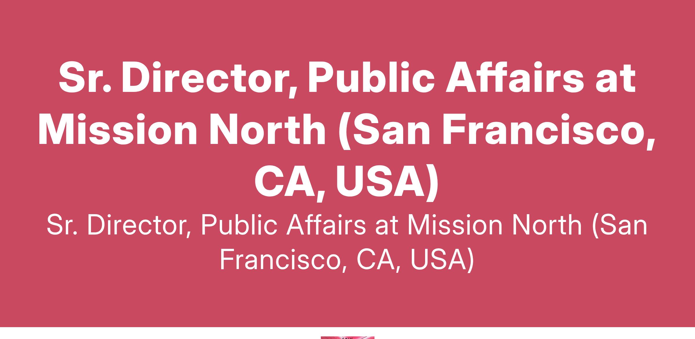 Sr. Director, Public Affairs at Mission North (San Francisco, CA, USA)