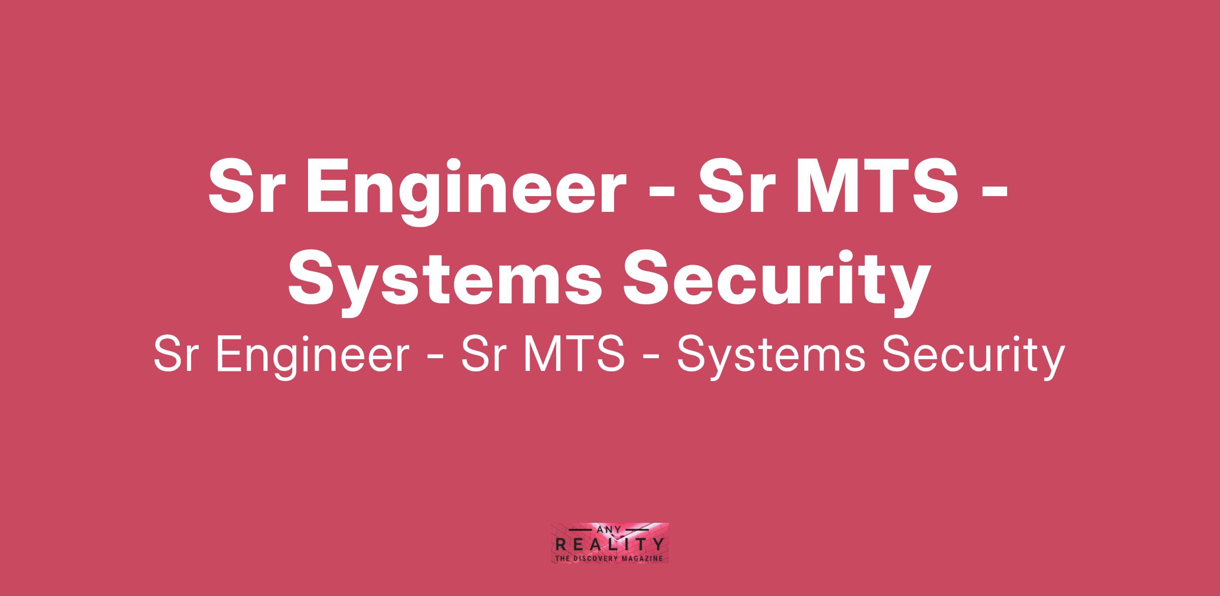 Sr Engineer - Sr MTS - Systems Security