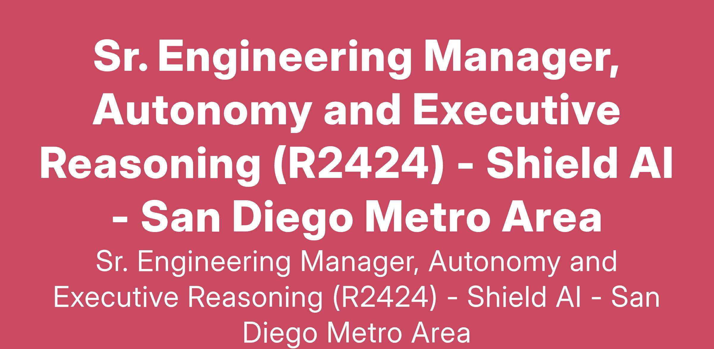 Shield AI is proud to be an equal opportunity workplace and is an affirmative action employer. We are committed to equal employment opportunity regardless of race, color, ancestry, religion, sex, national origin, sexual orientation, age, marital status, disability, gender identity or Veteran status. If you have a disability or special need that requires accommodation, please let us know.