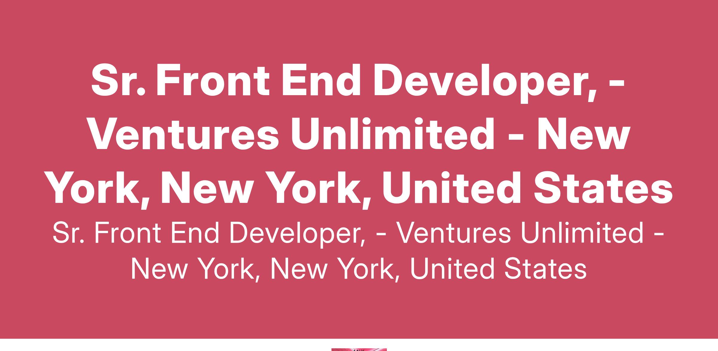 Position: Sr. Front End Developer,