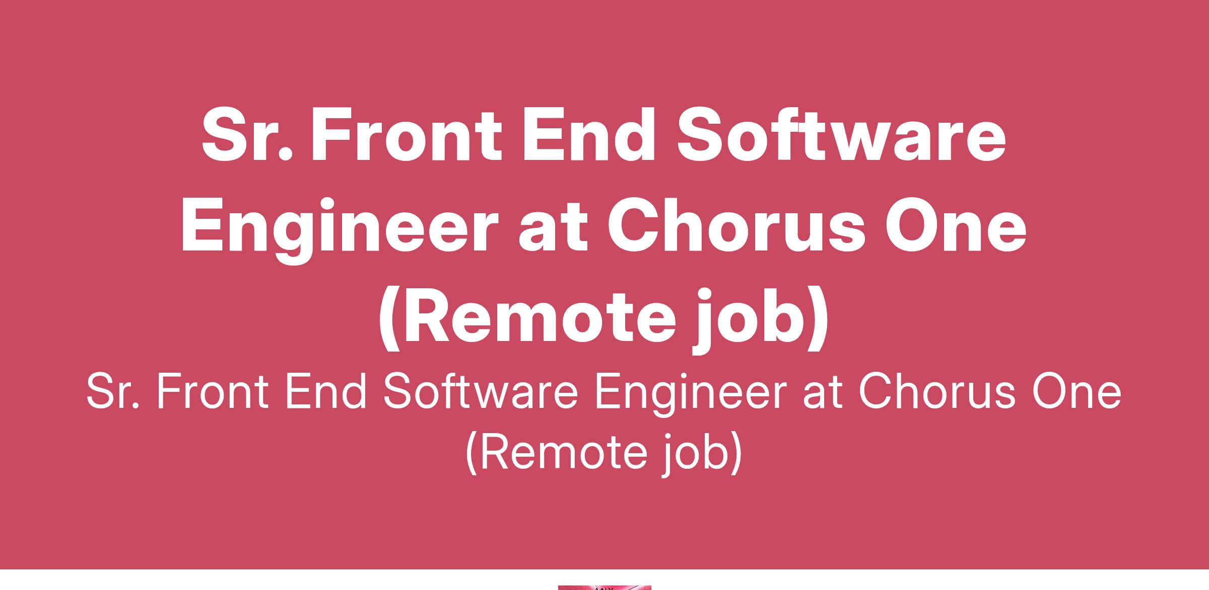 Sr. Front End Software Engineer at Chorus One (Remote job)