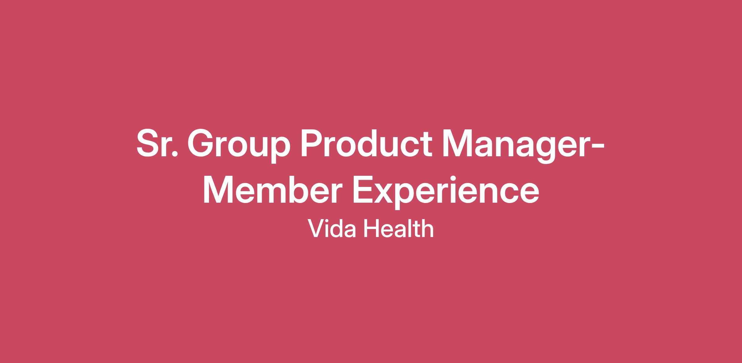 Sr. Group Product Manager- Member Experience