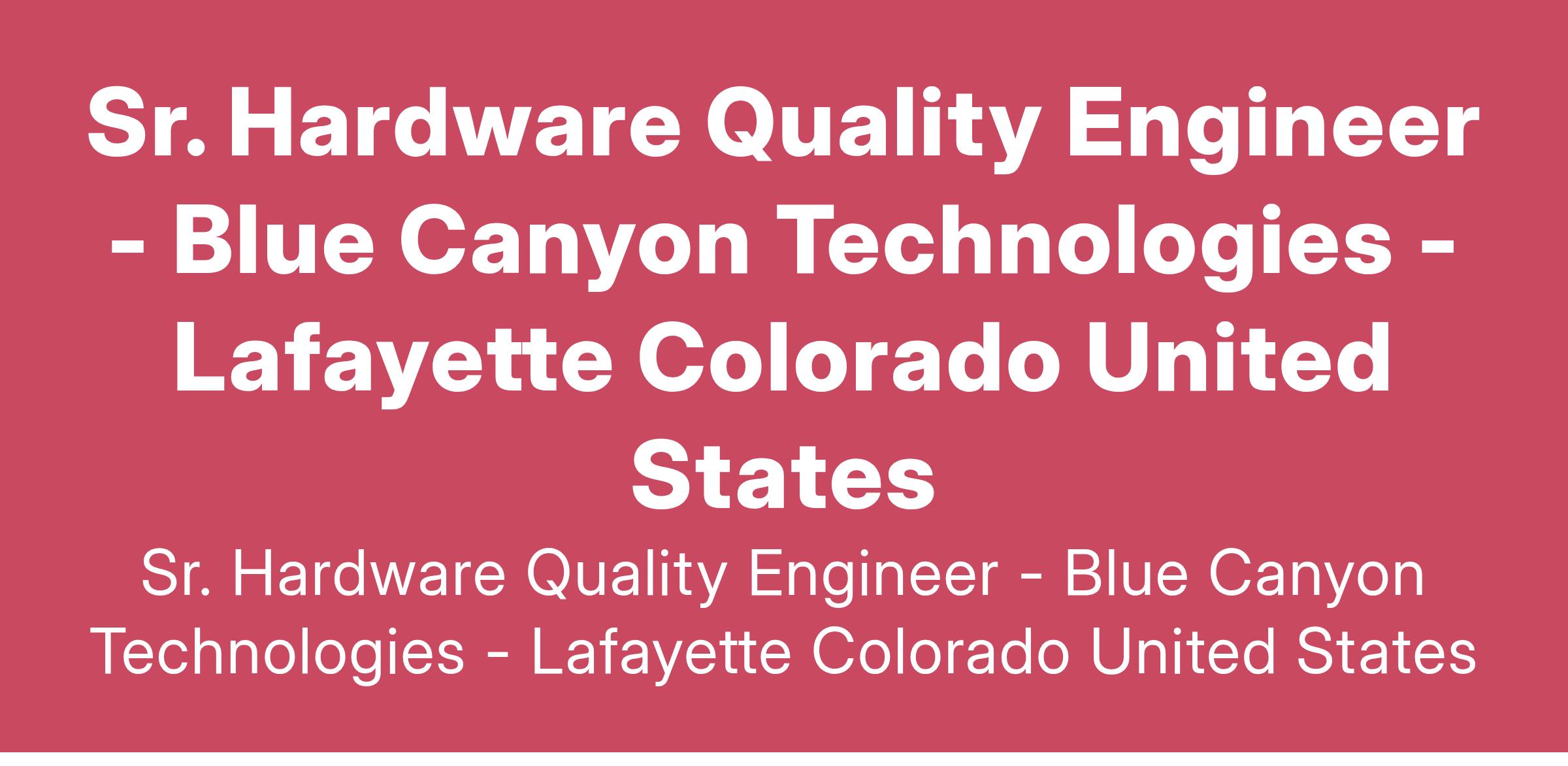 Blue Canyon Technologies is a drug-free workplace and an Equal Employment Opportunity (EEO)/Affirmative Action Employer. All qualified applicants will receive consideration for employment without regard to race, color, religion, sex, sexual orientation, national origin, age, disability, marital status, veteran status, or any other protected factor. Colorado Residents: In any materials you submit, you may redact or remove age-identifying information such as age, date of birth, or dates of school attendance or graduation. You will not be penalized for redacting or removing this information. Blue Canyon Technologies is committed to providing access, equal opportunity, and reasonable accommodations for individuals with disabilities in employment, its services, programs, and activities. To request a reasonable accommodation, contact Melissa Po at HR@bluecanyontech.com.