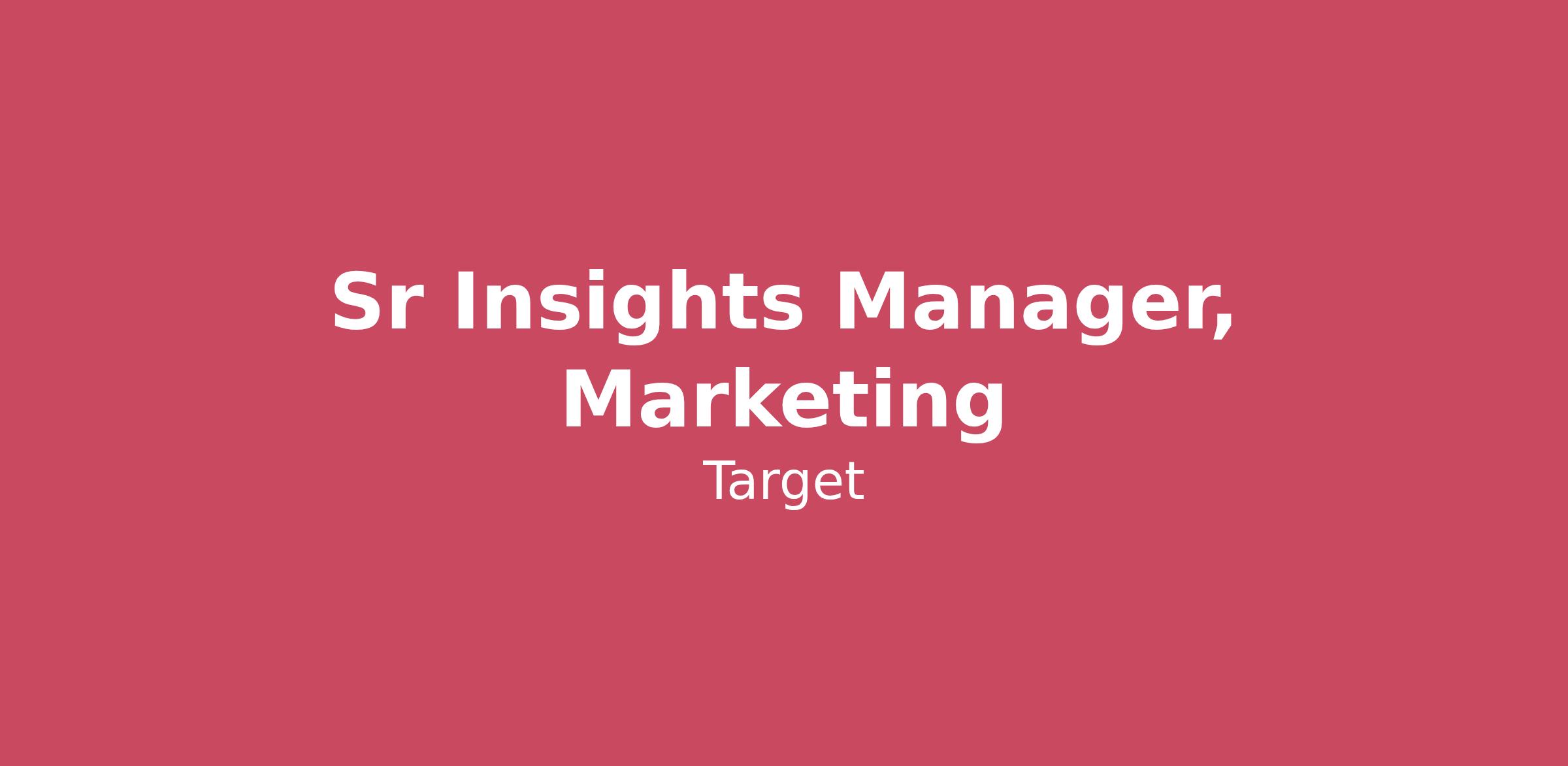 The pay range is $115,000.00 - $206,000.00Pay is based on several factors which vary based on position. These include labor markets and in some instances may include education, work experience and certifications. In addition to your pay, Target cares about and invests in you as a team member, so that you can take care of yourself and your family. Target offers eligible team members and their dependents comprehensive health benefits and programs, which may include medical, vision, dental, life insurance and more, to help you and your family take care of your whole selves. Other benefits for eligible team members include 401(k), employee discount, short term disability, long term disability, paid sick leave, paid national holidays, and paid vacation. Find competitive benefits from financial and education to well-being and beyond at https://corporate.target.com/careers/benefits.About Us:Working at Target means helping all families discover the joy of everyday life. We bring that vision to life through our values and culture. Learn more about Target here. A role on the Enterprise Insights team means you will be a champion for our current and future guests, inspiring the organization to act in their best interest. You will help partners build consumer-centric strategies and activations.As a Senior Insights Manager, Marketing Insights, you have responsibility for building Enterprise-wide empathy and understanding of consumers based upon important demographics, behaviors, needs, and attitudes. You will be responsible for designing and executing guest or consumer research to support key initiatives. You will be the primary contact for internal partners and will identify the appropriate research method, data source and vendor/supplier to execute work. Lead the design, execution, and measurement of advertising campaigns across all media channels, ensuring alignment with organizational objectives and delivering insights and strategic recommendations to senior leadership. Core responsibilities of this job are described within this job description. Job duties may change at any time due to business needs. About you:8+ years of consumer insights or market research inclusive of advertising measurement or marketing analytics.Experience working with marketing measurement solutions that include, but not limited to: campaign tracking, creative testing and development, brand lift studies, and experiential measurement; marketing mix modeling and multi-touch attribution modeling.Ability to craft a compelling narrative around data and insights that makes them accessible and persuasive to senior leadership, stakeholders, or cross-functional partners.Evaluating potential risks based on data-driven insights and developing strategies to mitigate those risks.Ability to identify underlying causes of business problems through data and research rather than just surface-level symptoms.Ability to define and track Key Performance Indicators (KPIs) to measure business performance and ensure alignment with strategic goals.Synthesize data from multiple sources (e.g., Nielsen, MRI, SNL Kagan, and internal sources) into clear, compelling narrativesStrong foundational knowledge of qualitative and quantitative research methods and tools, including the ability to diagnose data irregularities.Capable of managing multiple projects simultaneously.Ability to manage external vendors, including market research firms and data providers, ensuring quality and timeliness of projects.This position may be considered for a Remote or Hybrid (known internally at Target as "Flex for Your Day") work arrangement based on Target's needs. A Remote work arrangement means the team member works full-time from home or an alternate location that's not a Target location, does not have a desk at a Target location and may travel to HQ up to 4 times a year. A Hybrid/Flex for Your Day work arrangement means the team member's core role may be performed either remote or onsite at a Target location depending upon what your role, team and tasks require for that day. Work duties cannot be performed outside of the country of the primary work location, unless otherwise prescribed by Target.Benefits EligibilityPlease paste this url into your preferred browser to learn about benefits eligibility for this role: https://tgt.biz/BenefitsForYou_EAmericans with Disabilities Act (ADA)In compliance with state and federal laws, Target will make reasonable accommodations for applicants with disabilities. If a reasonable accommodation is needed to participate in the job application or interview process, please reach out to candidate.accommodations@HRHelp.Target.com. Non-accommodation-related requests, such as application follow-ups or technical issues, will not be addressed through this channel. Application deadline is : 04/02/2026