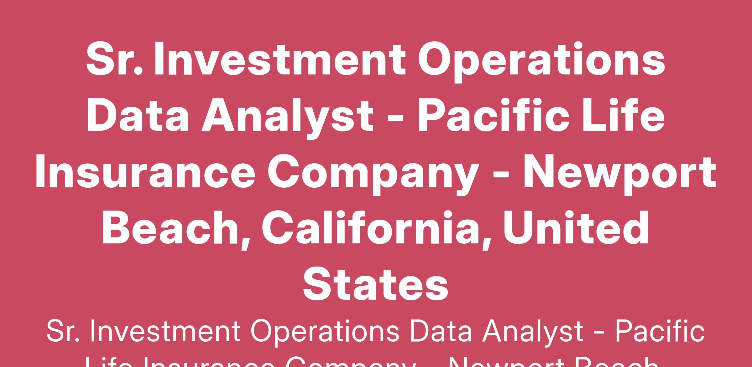 We’re actively seeking a talented Sr. Investment Operations Data Analyst to join our Pacific Life Investment Operations team in Newport Beach, CA. This role is hybrid. We believe in empowering our employees to get work done both in and out of the office.
