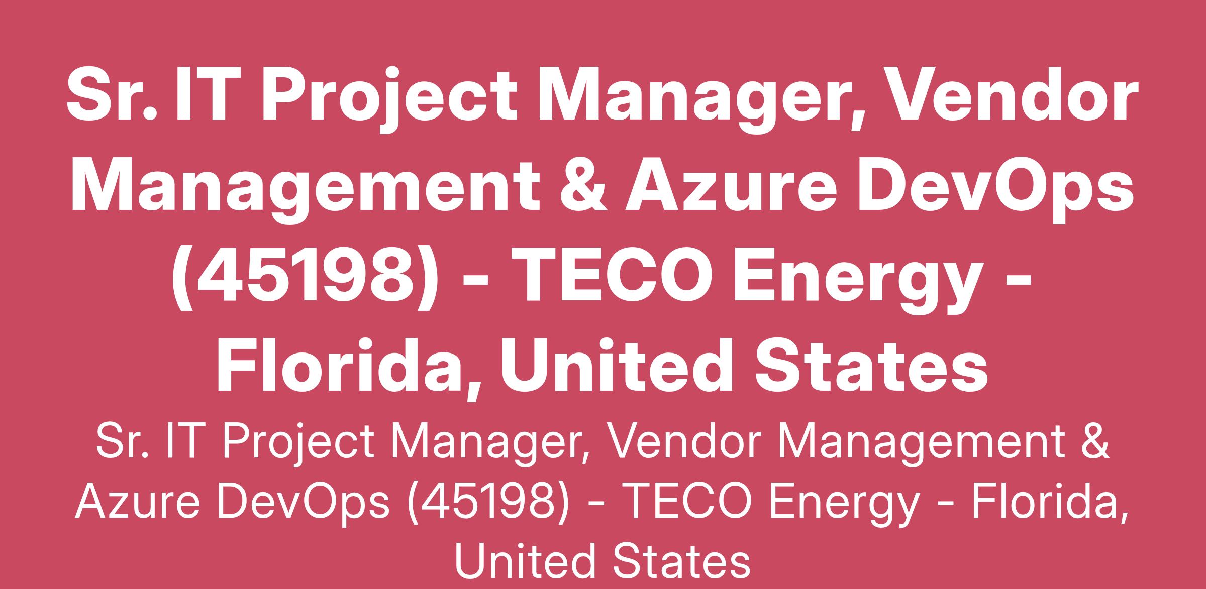 Primary Role Focus: Vendor Management, Azure DevOps experience, ability to restate complex technical information in a format appropriate to the audience.