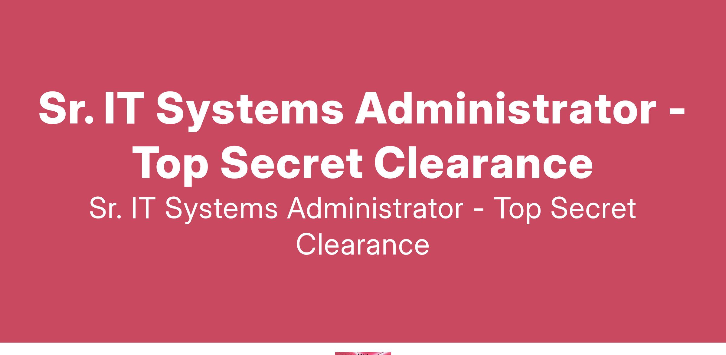 Sr. IT Systems Administrator - Top Secret Clearance