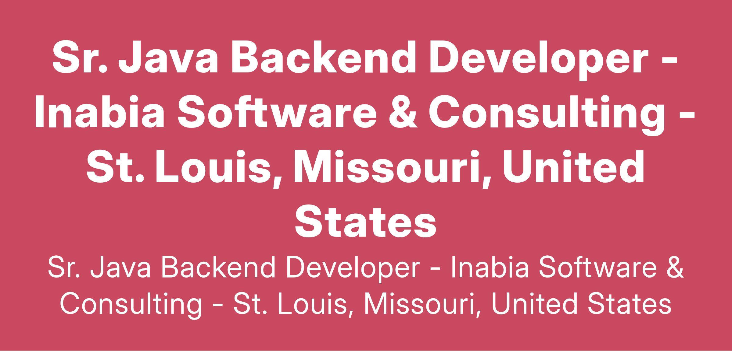 Location: St. Louis, MO (Only Local Candidates needed & In-Person interview)