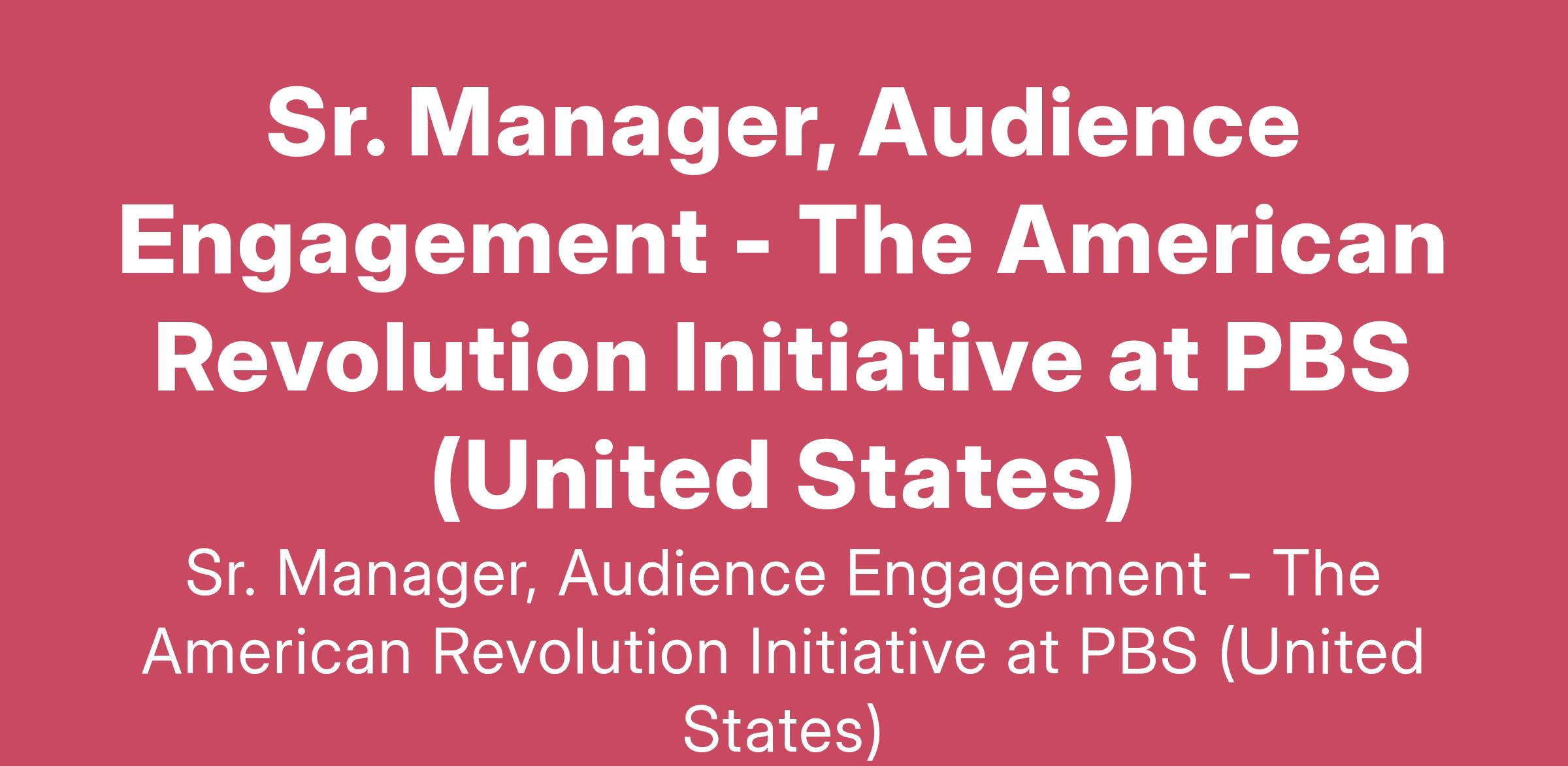 Sr. Manager, Audience Engagement - The American Revolution Initiative at PBS (United States)