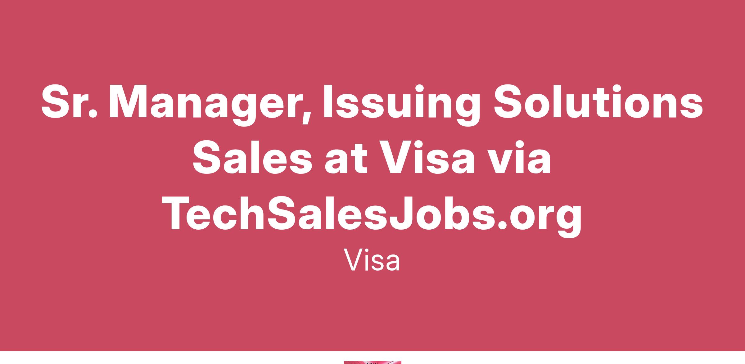 Sr. Manager, Account Executive, Visa USA Sales, is responsible for developing, maintaining, and executing sales strategies for US Financial Institutions. This position is responsible for selling issuer payment processing services into financial institutions and negotiating contractual arrangements. The position will work closely with internal and external partners to ensure appropriate communication flows and sustained business relationships.