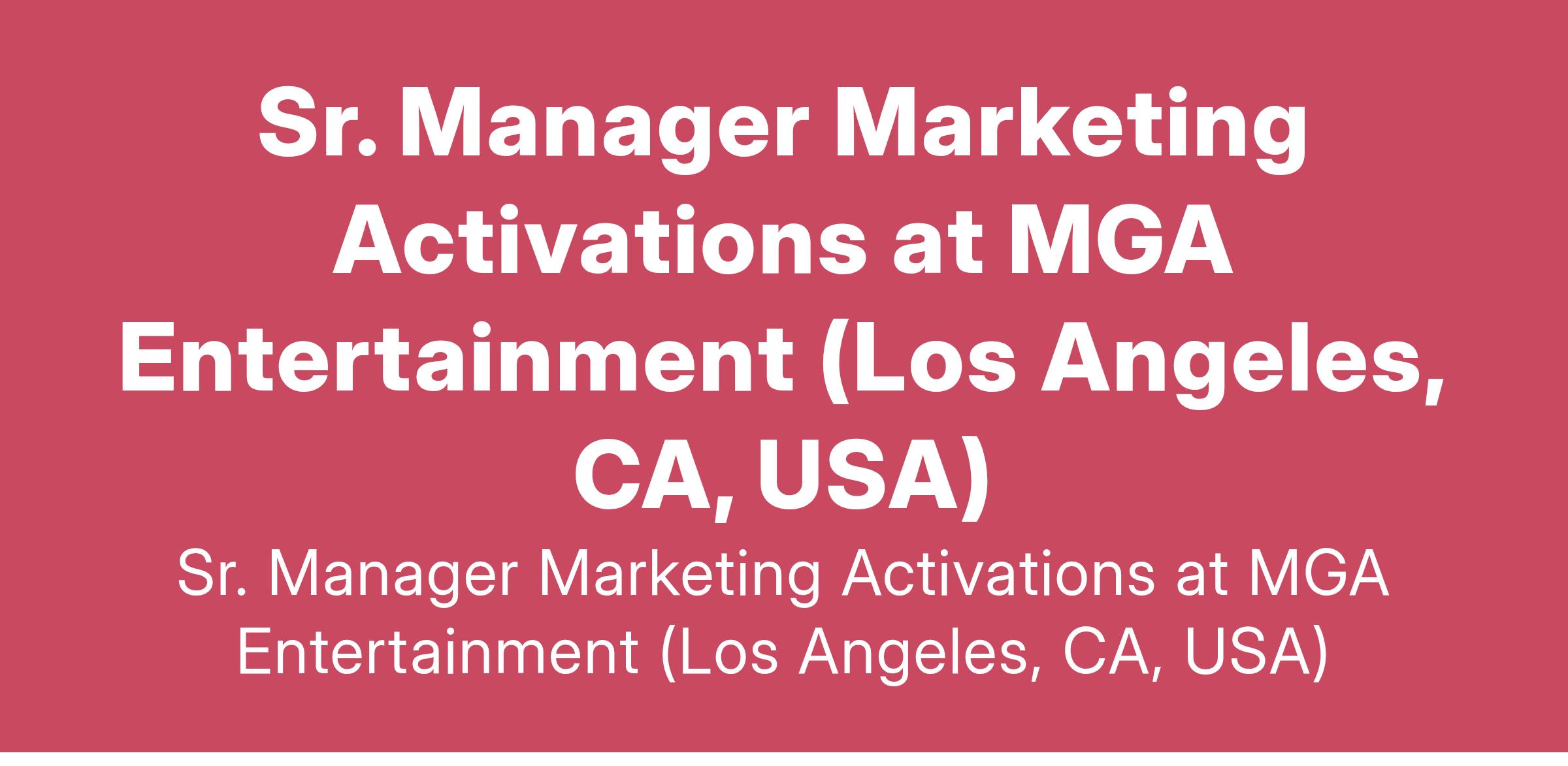 Sr. Manager Marketing Activations at MGA Entertainment (Los Angeles, CA, USA)