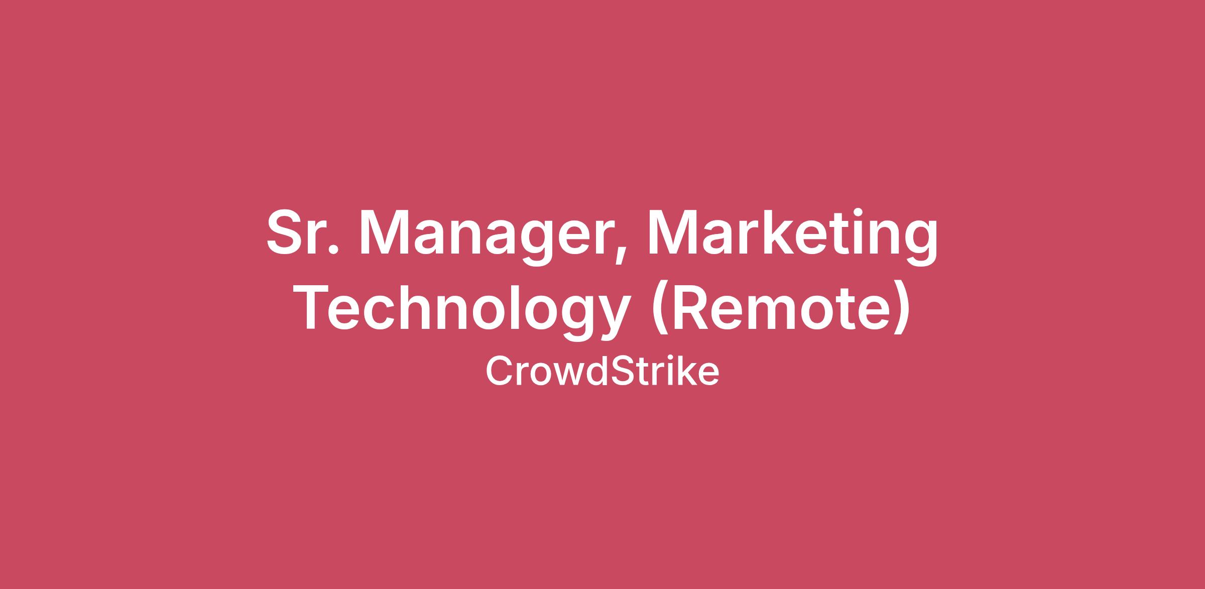 As a global leader in cybersecurity, CrowdStrike protects the people, processes and technologies that drive modern organizations. Since 2011, our mission hasn’t changed — we’re here to stop breaches, and we’ve redefined modern security with the world’s most advanced AI-native platform. Our customers span all industries, and they count on CrowdStrike to keep their businesses running, their communities safe and their lives moving forward. We’re also a mission-driven company. We cultivate a culture that gives every CrowdStriker both the flexibility and autonomy to own their careers. We’re always looking to add talented CrowdStrikers to the team who have limitless passion, a relentless focus on innovation and a fanatical commitment to our customers, our community and each other. Ready to join a mission that matters? The future of cybersecurity starts with you.About the Role: The CrowdStrike Marketing IT team is currently undertaking a significant modernization effort, re-architecting the entire Marketing technology stack. Key initiatives include migrating all digital properties, such as the corporate website, to the Adobe CMS platform, overhauling the Customer Data Platform (CDP) architecture, and implementing a new Digital Asset Management (DAM) system.This role, as a key leader within the Marketing IT team, is crucial for the successful alignment of marketing strategies with technology solutions. You will be responsible for optimizing current technology investments and integrating new applications to boost the marketing team’s efficacy across various audiences, functions, and tools.Serving as the essential bridge between Marketing and IT, this individual ensures that the marketing teams are equipped with and leverage the best available tools and technologies. This position includes supervisory responsibilities for both on-shore and off-shore team members.. What You'll Do: Create and implement a comprehensive technology strategy, both short and long-term, that articulates a clear and compelling vision for our digital platforms, enhances the internal user experience, grows external user engagement, and modernizes our capabilities and in-house talent.Strategic planning & leadershipAdvance the maturity of marketing platforms and tools, including DAM, CMS, CDP, email marketing systems, and analytics tools to deliver on the strategic goals for Marketing IT & Crowdstrike.Cultivate and lead a collaborative relationship with other parts of IT organization to ensure proper exploration, implementation, development, and maintenance of supporting marketing technologies.Develop, track, and execute a product roadmap for evolving the marketing technology stackBuild relationships with key stakeholders across the company to foster productive relationships, improve communication, and inform the development of systems and resources.Ensure consistent tracking, measurement, and reporting of campaign performanceLead and manage the marketing technology team, including web developers, business system analysts, system administrators and QA.Foster a collaborative and innovative team environment, promoting professional growth.Develop hands-on expertise in the systems and tools to manage the people and work with precision and expertise.Stay updated on emerging marketing technologies and trends, recommending new tools and platforms as necessaryLead RFP processes for selecting new marketing technologies and platformsVendor & Budget ManagementManage relationships with technology vendors, negotiating contracts and ensuring the company gets the best valueWhat You’ll Need:Bachelor’s degree in Computer Science, Computer Engineering, Electrical Engineering or related field or a combination of education and equivalent experience10+ years of experience in marketing technology, digital marketing, or IT with a focus on marketing platforms and tools5+ years of experience of managing, leading, mentoring & growing global technology teamWorking knowledge of Adobe Experience Cloud (AEM Site, AEM Assets, Analytics, Target, Launch, Multi Site Manager, CDP etc.)Knowledge of Adobe Creative Cloud and/or Adobe Document Cloud will be added plusProven ability to lead cross-functional teams and manage projects from conception to completionExperience assessing value-effort-timelines tradeoff & make prioritization decisions Ability to manage multiple projects in a fast-paced environmentStrong problem-solving skills with attention to detailsProven track record of implementing new marketing technologies and achieving measurable business resultsExcellent communication skills, both written and verbal, with the ability to present technology concepts to non-technical stakeholdersStrong understanding of SDLC methodologies (Agile, SCRUM)#LI-SC1 #LI-RemoteBenefits of Working at CrowdStrike:Market leader in compensation and equity awardsComprehensive physical and mental wellness programs Competitive vacation and holidays for recharge Paid parental and adoption leavesProfessional development opportunities for all employees regardless of level or roleEmployee Networks, geographic neighborhood groups, and volunteer opportunities to build connectionsVibrant office culture with world class amenitiesGreat Place to Work Certified™ across the globeCrowdStrike is proud to be an equal opportunity employer. We are committed to fostering a culture of belonging where everyone is valued for who they are and empowered to succeed. We support veterans and individuals with disabilities through our affirmative action program.CrowdStrike is committed to providing equal employment opportunity for all employees and applicants for employment. The Company does not discriminate in employment opportunities or practices on the basis of race, color, creed, ethnicity, religion, sex (including pregnancy or pregnancy-related medical conditions), sexual orientation, gender identity, marital or family status, veteran status, age, national origin, ancestry, physical 