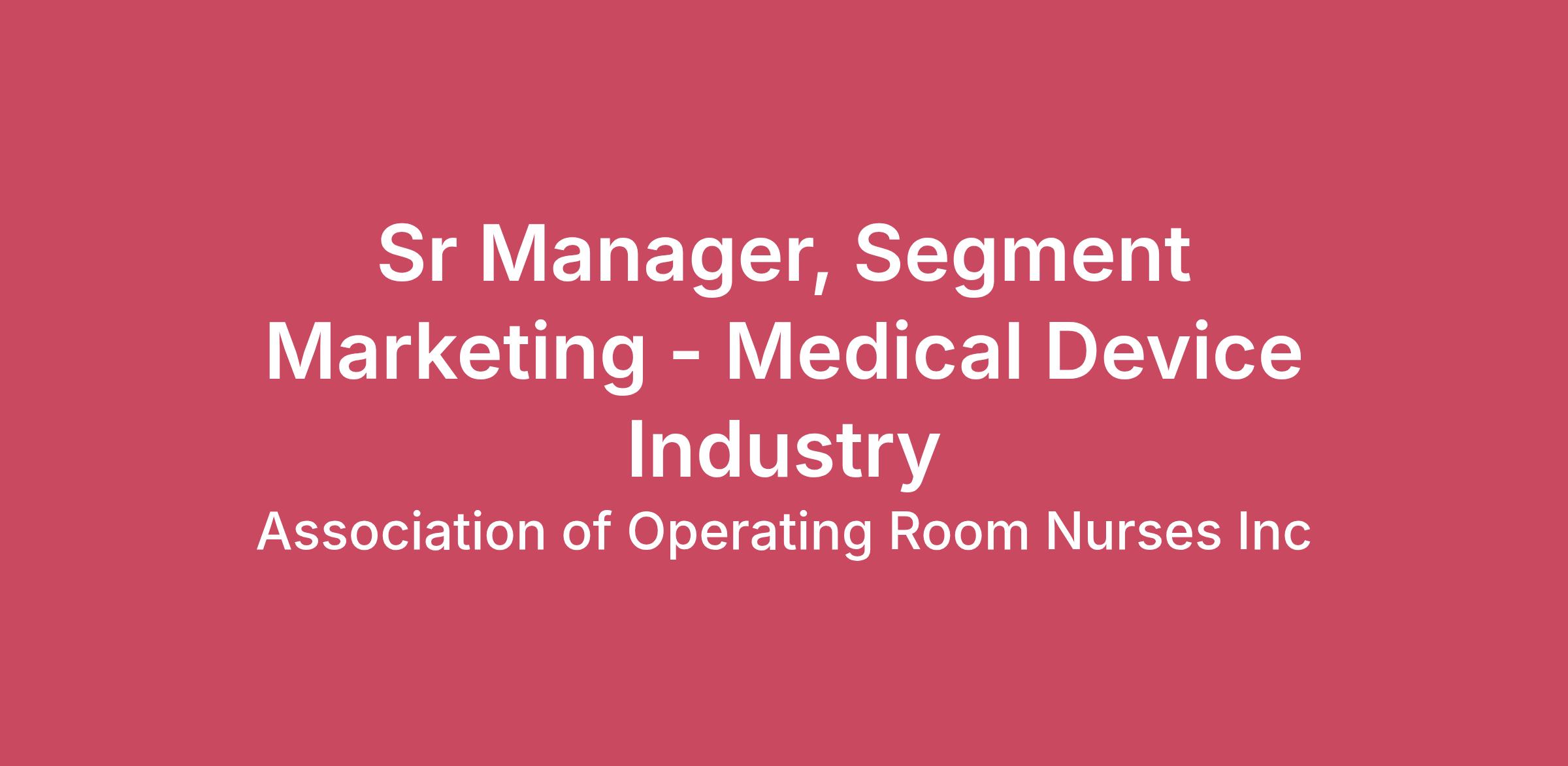 Why Work Here?“Mission driven, great benefits and room for growth!”Why consider AORN, Association of periOperative Registered Nurses, as the next place for your career as our Sr Manager, Segment Marketing – Medical Device Industry? Because we’re innovative and all about quality and collaboration – we’re continually seeking to enhance our offerings to allow us to better tailor to the needs of our nurse members while expanding our market position and growing revenue across our business and sales divisions.Our mission is to define, support, and advocate for patient and staff safety through exemplary practice for each phase of perioperative nursing care using evidence-based guidelines, continuing education, and clinical practice resources. We collaborate with professional and regulatory organizations, industry leaders, and other health care partners who support our mission. Our culture is one of openness, teamwork, risk taking and being at the cutting edge of our field and we only look for employees who hold these same traits.Values mean more to AORN than just bullets on a page. They drive our daily decisions and impact how we work as an organization:Innovation: Taking courageous and bold actions for growth and sustainability.Communication: Exemplifying respect, collaboration, transparency and honesty.Quality: Ensuring accountability and excellence.Diversity, Equity, Inclusiveness: Promoting fairness, valuing differences, considering all perspectives.Achievement: Achieving our mission, realizing the vision.Our Sr Manager, Segment Marketing – Medical Device Industry is the strategic, hands-on Marketing leader for AORN’s Medical Device Industry, driving growth of educational, awareness and access-oriented programs and products across institutional and professional audiences. Partnering with the Sr Director of Marketing and Corporate Communications, Lines of Business (LOB) leaders, and both internal and external Medical Device Industry Sales teams, this role develops and executes integrated, data-driven segment strategies that accelerate acquisition, engagement, retention, and revenue.Operating within an internal agency model, the Sr Manager leads a high-performing team to deliver multi-channel campaigns, sales enablement, and account-based marketing initiatives aligned to quarterly growth objectives. The role owns the market, customer, consumer behavior, and competitive insights, translating intelligence into clear value propositions, messaging, and strategies that grow AORN’s Medical Device Industry clients. AORN is based in Denver, CO. Our Sr Manager, Segment Marketing – Medical Device Industry will work remotely.More about what you’ll get to do as our Sr Manager, Segment Marketing – Medical Device Industry: Own the segment marketing strategy for Medical Device Industry. Establish and lead ongoing market, customer, consumer behavior, and competitive intelligence processes. Create and maintain personas, value propositions, and messaging frameworks for institutional buyers and perioperative professionals. In collaboration with the Sr Director and LOB leaders, translate market and member insights into clear go‑to‑market (GTM) plans, competitive messaging, customer journeys and customer experiences.Drive acquisition, onboarding, engagement, renewal, and re‑engagement campaigns to grow qualified leads and revenue.Promote AORN’s mission-driven programs through tailoring offers and journeys for the Medical Device Industry.Plan and execute integrated campaigns across email, web, paid, social, content, and events with defined KPIs, budgets, and timelines.Partner with digital, web, and creative team to deliver targeted, accessible, and compliant content across channels.Ensure quality control of all externally facing assets, including content accuracy, visuals, URLs, and links. Create and manage clear creative briefs outlining audience insights, competitive context, and success metrics. Collaborate with the Medical Device Industry Sales team and LOB leader on offers, pricing narratives, objections, and competitive strategy. Build and evolve sales enablement tools (pitch decks, one-pagers, case studies, email sequences) and incorporate field feedback. Define, track, and report funnel KPIs (lead quality, conversion, revenue/ARR, member growth, retention, engagement, and ROI). Assess channel and platform performance; test and optimize to improve efficiency and impact; deliver regular performance reports. Lead and manage employees and contractors supporting assigned segments. Provide coaching, mentorship, and performance feedback to team members. Collaborate cross-functionally with the Membership, Education, Events, Policy/Advocacy, Sales, and Analytics teams. Other duties as assigned.Must Have’s to be our Sr Manager, Segment Marketing – Medical Device Industry:MINIMUM QUALIFICATIONSBachelor’s degree in marketing, business, communications, healthcare administration or related field.8+ years of progressive strategic marketing experience in the medical device industry, hospitals/health systems, or related healthcare industries. 3+ years of experience managing a team. PREFERRED QUALIFICATIONSExperience marketing to or partnering with medical device or B2B healthcare manufacturers.Experience working for a membership association. Experience in an agency setting, internal or external. Experience developing sales enablement assets and collaborating closely with sales teams.Experience with best practices for digital and traditional channels.Experience using data and analytics to inform strategy and optimize performance. Proficiency with marketing technology (CMS, CRM, marketing automation, paid media, social, analytics). KNOWLEDGE, SKILLS AND ABILITIESDeep understanding of the healthcare landscape including medical device, institutional, and professional buyer dynamics.Exceptional written, verbal, and presentation skills; ability to translate complex clinical and operational c