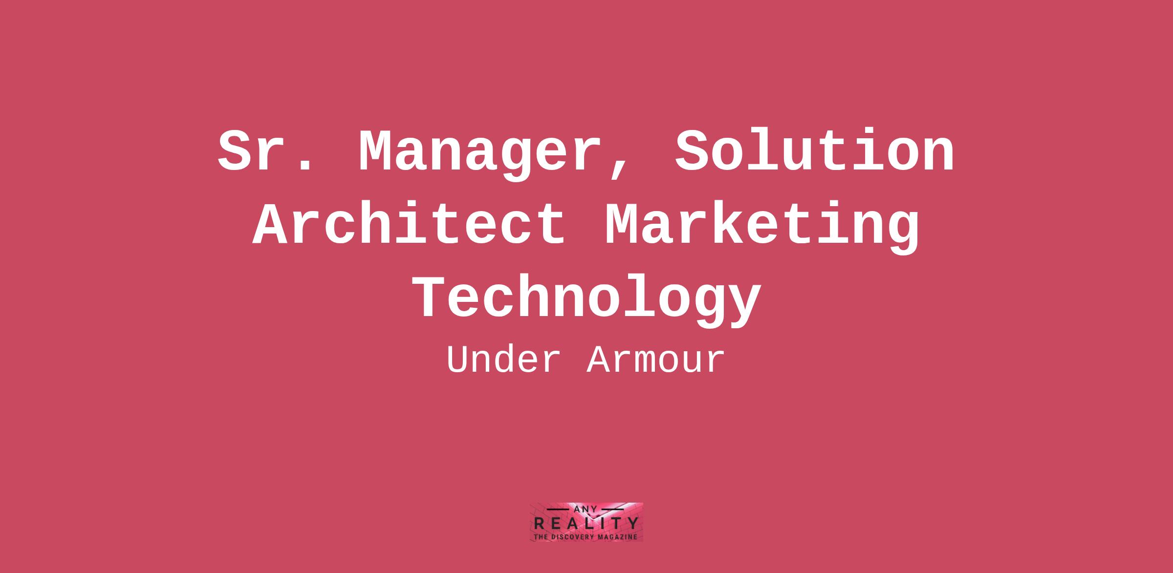 Sr. Manager, Solution Architect Marketing Technology Values & Innovation At Under Armour, we are committed to empowering those who strive for more, and the company's values - Act Sustainably, Celebrate the Wins, Fight on Together, Love Athletes and Stand for Equality - serve as both a roadmap for our teams and the qualities expected of every teammate. Our Values define and unite us, the beliefs that are the red thread that connects everyone at Under Armour. Our values are rallying cries, reminding us why we're here, and fueling everything we do. Our pursuit of better begins with innovation and with our team's mission of being the best. With us, you get the freedom to go further - no matter your role. That means developing, delivering, and selling the state-of-the-art products and digital tools that make top performers even better. If you are a current Under Armour teammate, apply to this position on the Internal Career Site Here. Purpose of Role Solutions Architects (SA) provide a bridge between specific business opportunities and the technology solutions which are needed to support them. They require a knowledge of the Enterprise Architecture, as one of their roles is to ensure compliance with the Enterprise Architecture in the project. SA roles are mostly project facing and provide two areas of support: With a business focus, ensuring the solution meets with the business requirements. With an enterprise focus ensuring that the enterprise requirements for reuse, compliance to standards, principles, traceability to enterprise reference models, and alignment with the target enterprise architecture vision. As a Senior Manager, Solution Architect of Marketing Technology at Under Armour, you will work closely with business and Global Technology leaders and will lead the design, development, and implementation of new solutions within the Marketing space including Email Marketing, Customer Service, and AgentForce. You will manage and maintain applications within your portfolio and provide leadership and oversight during the full lifecycle to ensure the deliverables meet the business requirements, meet high standards of quality and adherence to architectural standards. In addition, the Senior Manager, SA is responsible for managing a team of both direct and indirect reports including Developer/Engineers, Leads and Analysts, partnering with business process owners and our Global Tech organization to drive business case development, delivery, and end to end execution against strategic and business unit projects and supporting cross functional squads using agile methodology and frameworks. Your Impact Drives Technologies Responsible for Marketing and Consumer Engagement: Leads teams in the design, development, implementation, and support of Email Marketing, Mobile Push, SMS (all SFMC) and Customer Service technology platform (SFSC) Directly drives impacts to revenue and consumer brand impressions by enabling seamless consumer emails, marketing and personalization campaigns experiences and customer service; either through direct development of capabilities or through supporting other initiatives that require touchpoints with platforms Support active projects and agile squads throughout the lifecycle, providing oversight and guidance on development objects and configuration (inclusive of Journey Builder, Ad Studio, MCP, etc.) to ensure efficiency and consistency with original design as well as overall quality of deliverables Oversees the technical design and architectural framework for Under Armour’s Customer Data, Email Marketing and Customer Service technologies and stays current on market trends and product roadmaps of technology platforms to keep Under Armour in front of new capabilities and consumer expectations Builds Talent and Provides Team Leadership: Attracts, retains, and develops top talent to build a world class team and provides leadership, mentoring, and coaching to team of business analysts and developers Attracts, retains, and develops top talent to build a world class team Selects, onboards, and manages performance of distributed team of internal teammates and external vendors including planning, capacity, resource allocation and delivery Collaborates Across Global Teams: Manages a direct relationship with key stakeholders including regional product teams and regional revenue teams to ensure their goals are supported through consumer engagement initiatives Collaborates in brainstorming, designing, architecting, and implementing new solutions and code development, as well as suggesting tools, technologies, and best practices to improve performance, capabilities, and reliability Ensures Efficient and Reliable Operations: Directs the development and maintenance of operational procedures for Email/Push/SMS Marketing and Customer Service technologies and infrastructure activities and develops and manages annual budgets as well as project budgets driven within area Owns all interactions with internal and external auditors regarding Consumer Engagement security and data privacy Qualifications Bachelor's degree with typically 10 years of relevant experience OR Master's degree with typically 8 years of relevant experience OR typically 14 years of relevant experience without degree Typically 3 - 5 years of management experience; or equivalent experience as the subject matter lead or expert in area of expertise. 5+ years of hands-on experience with Salesforce Marketing Cloud, Service Cloud, or other packaged marketing solutions, including API and 3rd-party system integrations (SOAP/REST). Strong analytical and problem-solving skills, with a proven ability to assess complex business and technical challenges and develop innovative solutions. Excellent communication and organizational abilities, including translating technical concepts into business terms and managing multiple priorities in fast-paced environments. Self-starter and proactive team contributor, capable of working independently w