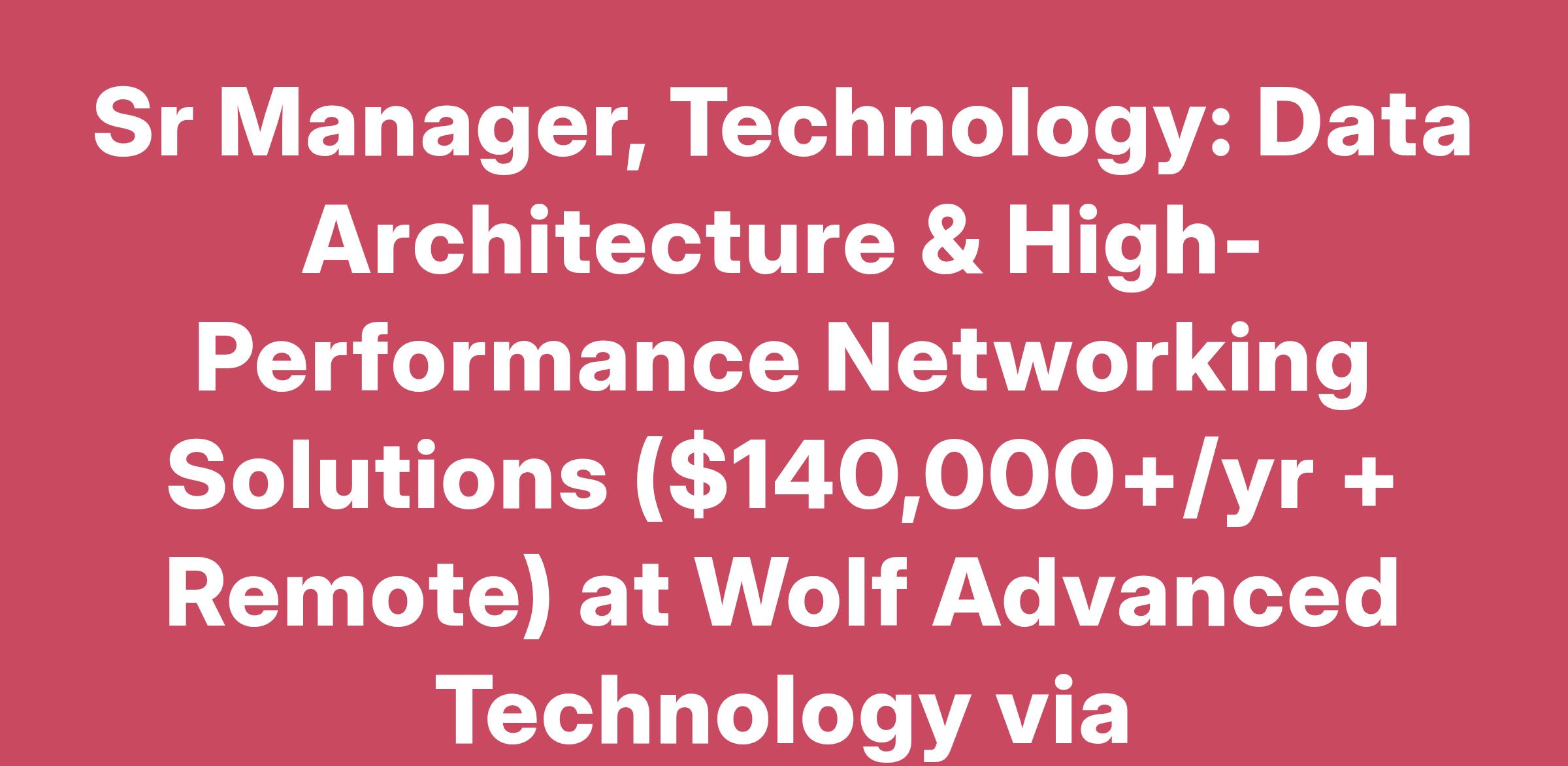 Sr Manager, Technology: Data Architecture & High-Performance Networking Solutions ($140,000+/yr + Remote) at Wolf Advanced Technology via TechSalesJobs.org