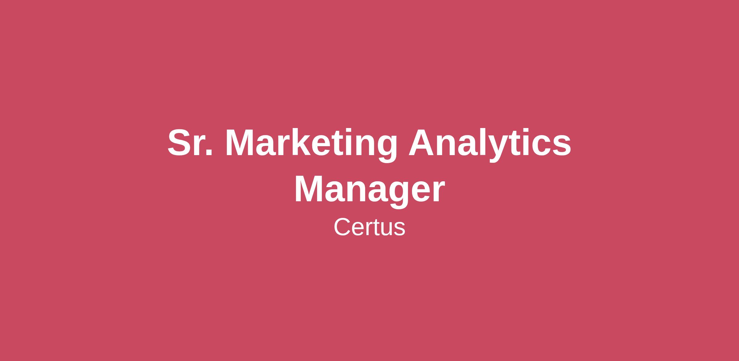 Company Overview:Our success lies at the powerful intersection of people and technology. Bringing innovative training and education solutions to more than 2 million customers a year, Certus enables lifelong learners at every level — from trusted industry brands, such as Amazon, Siemens, Geico and Chick-fil-A, to individual learners seeking to enter, sustain or advance their careers. Our people come with a get-it-done spirit and a desire to impact a rapidly growing industry. Certus is committed to continuously evolving to ensure a culture where employees can be themselves, do their best work, and thrive, both professionally and personally. We choose to be a remote workforce so we can hire top talent regardless of location — all while empowering employees to work from wherever they choose. Innovative, brave, kind and diverse are defining traits of our team. Our talent is positioned in numerous roles, with opportunity for internal mobility, such as software engineers, instructional designers, creative writers, consultative sales professionals, innovative marketers and more. Opportunity Overview: As the Sr. Marketing Analytics Manager, you will lead a high-performing team responsible for delivering insights, measurement frameworks, and data-driven recommendations that support our marketing strategy across B2B and B2C channels. You will manage a team of analysts - spanning B2B analytics, marketing performance analysis, and digital tagging/marketing insights - and guide them in transforming data into actionable insights and recommendations that fuel growth. In this role, you will partner with senior leaders across the organization to align analytics with strategic marketing priorities and ensure data-driven decision-making across campaigns, channels, and customer engagements.This is a hands-on leadership role in the Marketing organization, blending strategic oversight with the technical expertise required to refine measurement standards and strengthen how we use data across channels. The ideal candidate brings deep expertise in marketing analytics and digital measurement tools, such as GA4, Google Tag Manager, and familiarity with at least one marketing intelligence reporting tool (e.g., Domo, Looker, Tableau)Key Responsibilities:· Team Management & Mentorship: Lead and develop a team of analysts, providing technical guidance on complex tracking implementations, funnel insights, and experimental design to ensure high-quality output.· Digital Measurement & Implementation: Oversee tagging implementation and data quality standards for GA4, GTM, UTM parameters and event tracking to ensure data integrity across all web and mobile properties.· Reporting & Marketing Intelligence: Guide the design and development of dashboards and reporting solutions that provide clarity into campaign ROI, funnel performance, customer behavior, and critical KPIs.· Experimentation & Optimization: Partner with marketing stakeholders to identify optimization opportunities, develop hypotheses, and support A/B testing strategies to validate performance improvements and drive campaign efficiency.· Data Quality & Standards: Establish and maintain rigorous measurement standards and documentation to ensure consistency in how data is collected, processed, and reported across the marketing organization.QualificationsRequired:· 7+ years of experience in Marketing Analytics, Digital Analytics, Growth Analytics, or similar fields, with at least 2–3 years in a leadership or mentorship role.· Strong understanding of performance marketing, full-funnel measurement, attribution, and campaign analysis.· Advanced proficiency with the Google Marketing Platform, specifically GA4 and Google Tag Manager (GTM) with the ability to troubleshoot complex tagging implementations and data layer issues. · Hands-on experience with at least one major Marketing Intelligence tool (e.g., Domo, Tableau, Looker) and a strong command of SQL for data extraction and transformation.· Exceptional communication skills with the ability to simplify complex data for non-technical stakeholders.· Ability to prioritize multiple initiatives and thrive in a fast-paced marketing environment· Proactive curiosity to look beyond the "what" of the data to uncover the "why" and provide recommendations that drive business efficiency.· Strong understanding of the marketing funnel across both B2B and B2C, including familiarity with attribution modeling, lead scoring, and multi-channel campaign measurementPerformance ExpectationsRamp Up Quickly on Certus’ Marketing Data Ecosystem: Develop a working understanding of our key marketing data platforms (e.g., GA4, GTM, Domo) and SQL-based marketing datasets within the first few months. Be able to navigate existing dashboards, understand attribution flows, and ask thoughtful questions that show you are building context. Deliver High-Quality Insights & Reporting: Translate complex marketing questions into clear, actionable insights that inform day-to-day decisions. Enhance our measurement and KPI standards to ensure all reporting for B2B and B2C channels provides deep visibility into campaign performance and ROI. Lead Improvements in Data Quality and Technical Execution: As you become familiar with our marketing tech stack, proactively flag any data inconsistencies, outdated reports, or areas where tracking can be simplified. Partner with our Sr. Tagging Engineer to audit our existing implementation, ensuring accuracy and data integrity across all digital properties. Mentor and Develop the Team: Foster a high-performing and collaborative analytics team by being a responsive and curious technical lead. Show that you can interpret business questions, translate them into data needs, and provide the technical mentorship required to elevate the team’s overall output and data literacy. Collaborate Effectively Across Stakeholders: Build strong working relationships with cross-functional stakeholders by being responsive, c