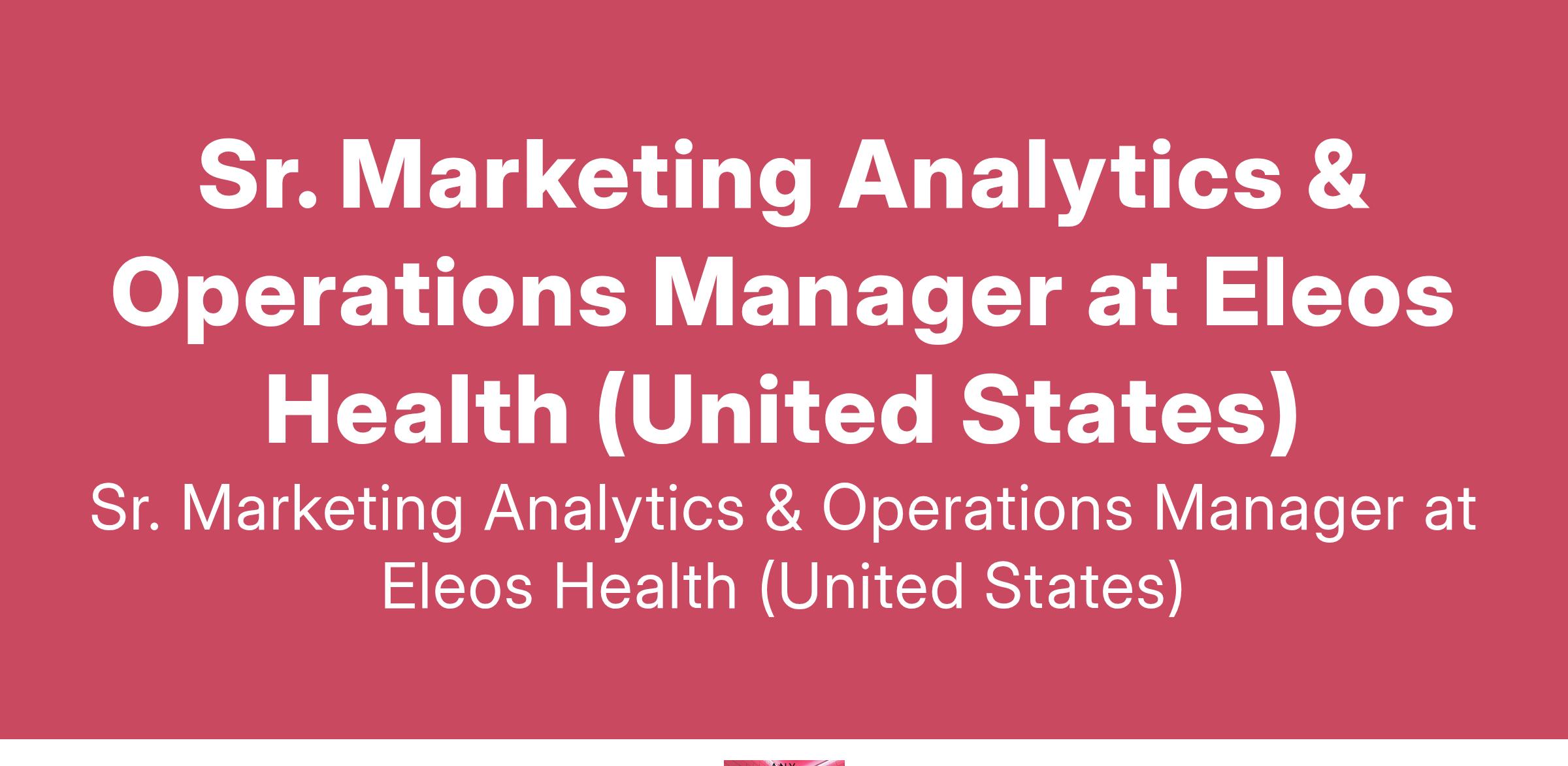 Sr. Marketing Analytics & Operations Manager at Eleos Health (United States)