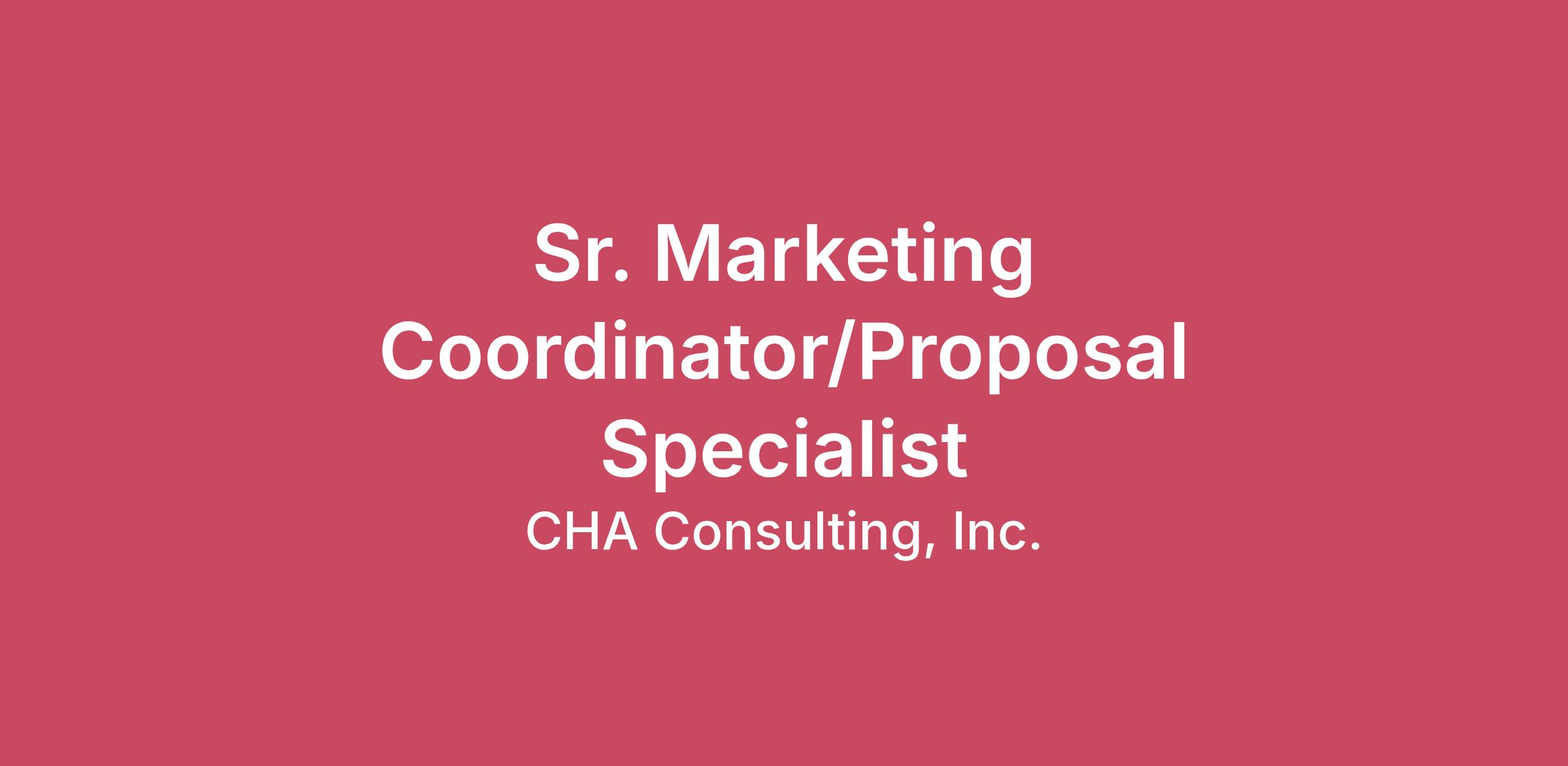 Join Us: Drive Marketing Excellence as a Sr. Marketing Coordinator/Proposal Specialist — Collaborate, Strategize, and Make an Impact Are you ready to turn your marketing expertise into real-world results for clients and communities? Do you thrive in a collaborative environment where communication, organization, and creativity drive every initiative? CHA Consulting, Inc. is seeking two Sr. Marketing Coordinator/Proposal Specialists to join our Marketing Team working remotely or at any of the following office locations: Albany, NY; Rochester, NY; Syracuse, NY; Parsippany, NJ; Fort Washington, PA; Hartford, CT; Indianapolis, IN; Silver Spring, MD; Reading, PA; or Nowell, MA. This is your opportunity to play a pivotal role in leading proposal efforts, supporting market strategies, and ensuring our marketing materials and client accounts are always a step ahead. This position offers fully remote capabilities; however, occasional on-site responsibilities may be required if you are located near a CHA office. What You'll Do: Drive marketing-related activities for our Power & Manufacturing sector Lead and coordinate proposal efforts from kick-off through submission, providing strategic input and ensuring all RFP requirements are met Build and maintain strong client relationships, serving as a trusted partner and advocate Collaborate with technical staff, business development, and other corporate teams to deliver compelling, high-quality proposals and marketing materials Support the development and execution of marketing strategies and materials that drive business growth and brand awareness What You Bring: Bachelor’s degree in Marketing, English, Business, or related field required Minimum of 5 years of relevant experience Experience in the AEC industry a plus Demonstrated writing and editing skills Proven client focus with a strong ability to work independently as well as part of a team Experience with Adobe InDesign for document layout Outgoing, energetic, and self-starting attitude Experience managing marketing projects from start to finish Why You'll Love It Here: Lead marketing initiatives that shape our markets and support client goals from concept to completion Collaborate with talented professionals and accelerate your growth in a culture that values innovation and excellence Enjoy a flexible work environment with opportunities for travel and professional development Salary Range: $36.05 - $42.54 Salary is based on a variety of factors, including, but not limited to, qualifications, experience, education, licenses, specialty, training, and fair market evaluation based on industry standards. Culture/EEO Statement: At CHA, we work every day to create solutions, help people, and improve our world, committed to creating and fostering excellence in our diverse and highly talented teams. Our teams continually strive to find better ways – always searching, never settling – to achieve extraordinary results. Our values around hiring, training, and community engagement reflect a company culture that is inclusive and forward leaning, always pushing the limits of what is possible. We as an organization celebrate the values of inclusion and equality, and advocate for the full participation of all people in an environment free of discrimination. To support these values, we invite all qualified applicants to be considered for employment regardless of race, color, religion, sex, sexual orientation, gender identity, national origin, citizenship, age, disability, protected veteran status, or any other characteristic protected by law. #LI-MC1