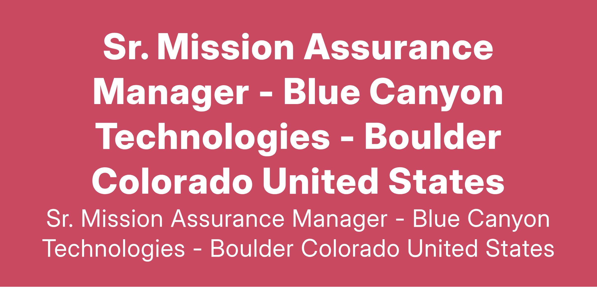 Blue Canyon Technologies is a drug-free workplace and an Equal Employment Opportunity (EEO)/Affirmative Action Employer. All qualified applicants will receive consideration for employment without regard to race, color, religion, sex, sexual orientation, national origin, age, disability, marital status, veteran status, or any other protected factor. Colorado Residents: In any materials you submit, you may redact or remove age-identifying information such as age, date of birth, or dates of school attendance or graduation. You will not be penalized for redacting or removing this information. Blue Canyon Technologies is committed to providing access, equal opportunity, and reasonable accommodations for individuals with disabilities in employment, its services, programs, and activities. To request a reasonable accommodation, contact Melissa Po at HR@bluecanyontech.com.