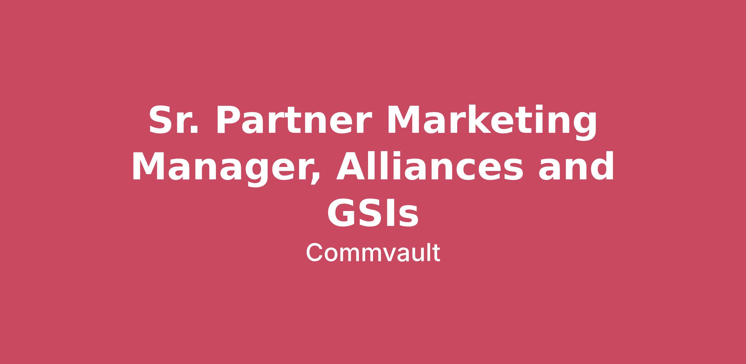 Recruitment Fraud Alert We’ve learned that scammers are impersonating Commvault team members—including HR and leadership—via email or text. These bad actors may conduct fake interviews and ask for personal information, such as your social security number. What to know: Commvault does not conduct interviews by email or text. We will never ask you to submit sensitive documents (including banking information, SSN, etc) before your first day. If you suspect a recruiting scam, please contact us at wwrecruitingteam@commvault.com About Commvault Commvault (NASDAQ: CVLT) is the gold standard in cyber resilience. The company empowers customers to uncover, take action, and rapidly recover from cyberattacks – keeping data safe and businesses resilient. The company’s unique AI-powered platform combines best-in-class data protection, exceptional data security, advanced data intelligence, and lightning-fast recovery across any workload or cloud at the lowest TCO. For over 25 years, more than 100,000 organizations and a vast partner ecosystem have relied on Commvault to reduce risks, improve governance, and do more with data. The Sr. Partner Marketing Manager will be responsible for supporting the overall global marketing plan with select strategic alliances and GSIs partners. You will be the lead for Everpure, Deloitte and Netapp to start. This person will be an individual contributor who will work closely with the regional partner marketing managers, the partner sales directors, the portfolio marketing team and our global partner campaigns and program team to drive our partner marketing strategy. Our marketing team is bold and fast paced. We are a team that is always looking to innovate and strive to be the market leader. If you are someone that likes to strategize, execute and is ready to dive in with a team of industry savvy experts, then you need to consider this opportunity.In this role you will use your strategic planning skills to drive business growth, including leveraging our entire partner ecosystem. You will be responsible to build and drive the marketing strategy in conjunction with sales and the local field teams to drive net new pipeline. You are ultimately responsible for continuous growth and driving pipeline globally for these strategic partners. Position Responsibilities: Build the overall partner marketing strategy for Deloitte, Everpure and Netapp Work collaboratively with our partner sales teams, our regional marketing teams and our global partner marketing program teams. Collaborate with our product partner ecosystem marketing team to create effective content for collateral, campaigns and events as needed. Work with all related groups within Commvault to ensure successful execution and launch of Partner marketing activities including Field Sales and Marketing, Integrated Marketing, Sales Operations, Corporate Communications, and others as required. Track the campaign and program metrics, KPIs, etc. analyze and communicate status against agreed metrics, identify opportunities to improve or optimize results. Position Requirements: Basic Knowledge of Cyber Resiliency, Data Protection, Security, Global Routes to Market via the Partner Ecosystem and associated technologies. 7+ years of Marketing experience with 3 years in a partner facing marketing role. Basic understand of marketing with a GSIs and Alliances at a global level. This includes understanding region nuances. Ability to build with help and execute an integrated go to market strategy to drive incremental pipeline including integrated campaigns, sales promotions, content, events, enablement, social media and PR. Basic understanding of Partner Marketing levers including MDF and OPEX Strong influencing skills and internal collaboration and stakeholder management Strong professional leadership and cross group collaboration DNA Executive presence and ability to influence across different stakeholder teams. Strong presentation skills a big plus Ability to travel up to 30% a must. You'll love working here because:• High income earning opportunities based on self-performance• Employee stock purchase plan (ESPP)• Continuous professional development, product training, and career pathing• Generous global benefits #LI-AM1 #LI-RemoteThank you for your interest in Commvault. Reflected below is the minimum and maximum base salary range for this role. At Commvault we use broad salary ranges in our job postings to reflect the diverse levels of expertise and experience among our candidates and is not reflective of the total compensation and benefits package. The specific salary offered will be determined based on your unique qualifications, including your relevant experience, skills, and the value you bring to the role. While the range provides a general idea of the compensation, it is important to note that placements within the range are not automatic and will be carefully considered to ensure a fair and competitive offer. We are committed to rewarding talent and experience.Pay Range$123,250—$207,000 USD Commvault is an equal opportunity workplace and is an affirmative action employer. We are always committed to equal employment opportunity regardless of race, color, ancestry, religion, sex, national origin, sexual orientation, age, citizenship, marital status, disability, gender identity or Veteran status and we will not discriminate against on the basis of such characteristics or any other status protected by the laws or regulations in the locations where we work. Commvault’s goal is to make interviewing inclusive and accessible to all candidates and employees. If you have a disability or special need that requires accommodation to participate in the interview process or apply for a position at Commvault, please email accommodations@commvault.com For any inquiries not related to an accommodation please reach out to wwrecruitingteam@commvault.com. Commvault's Privacy Policy