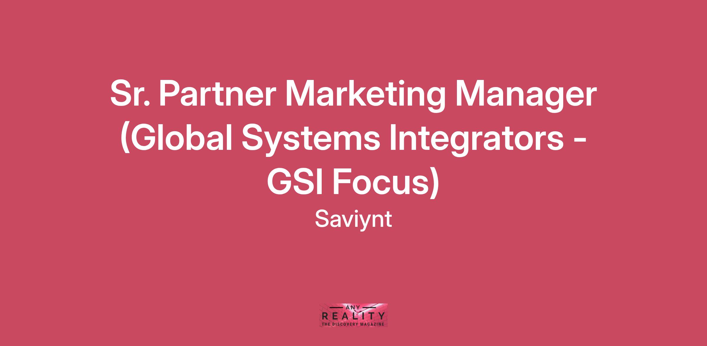 Sr. Partner Marketing Manager (Global Systems Integrators - GSI Focus)