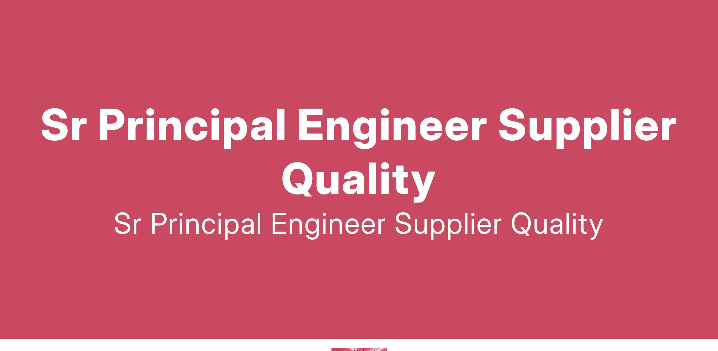 Sr Principal Engineer Supplier Quality
