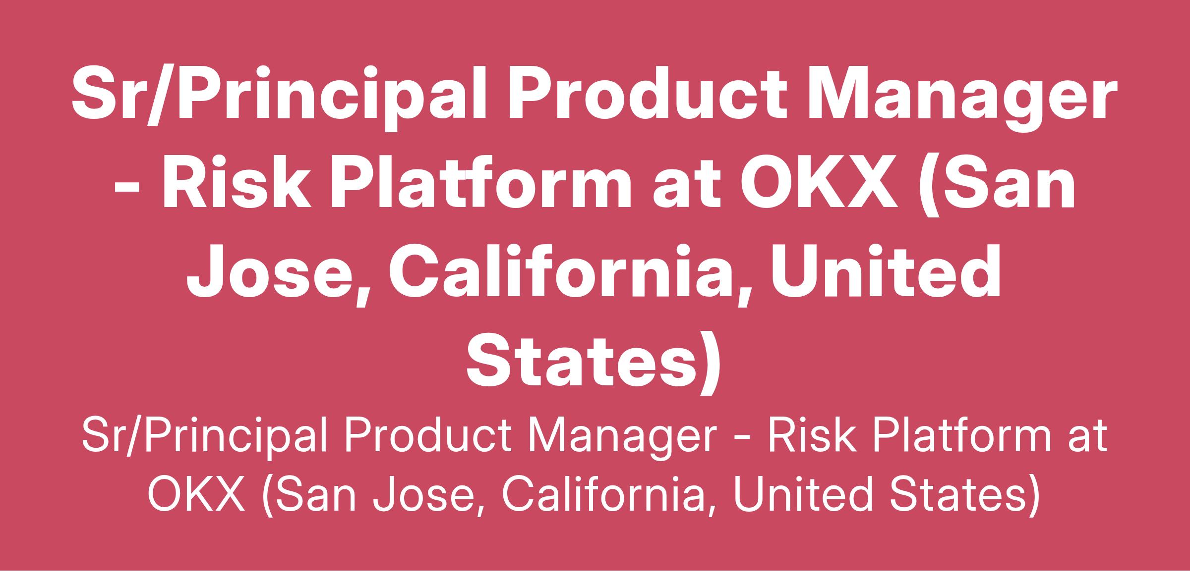Sr/Principal Product Manager - Risk Platform at OKX (San Jose, California, United States)
