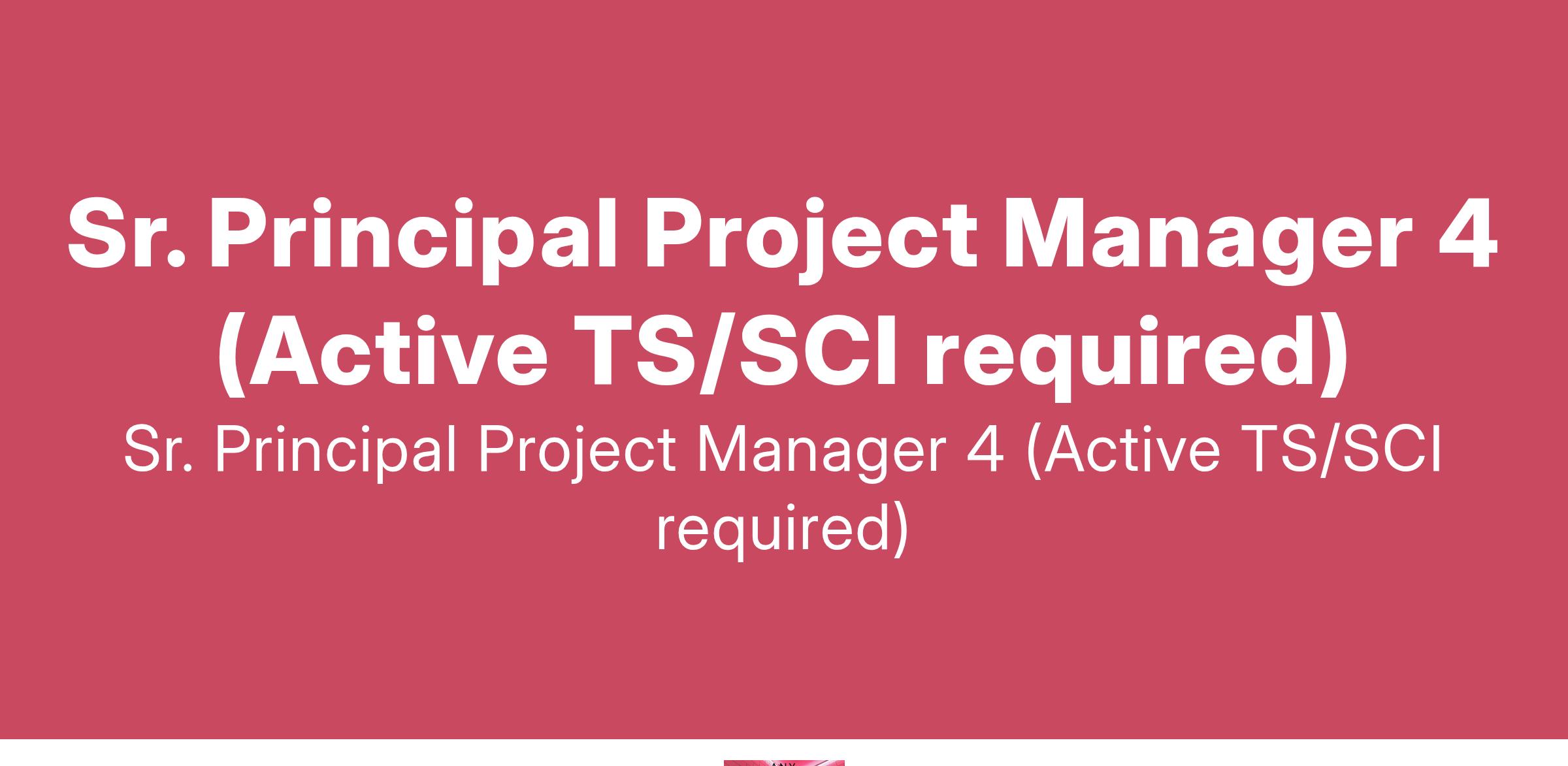 Sr. Principal Project Manager 4 (Active TS/SCI required)