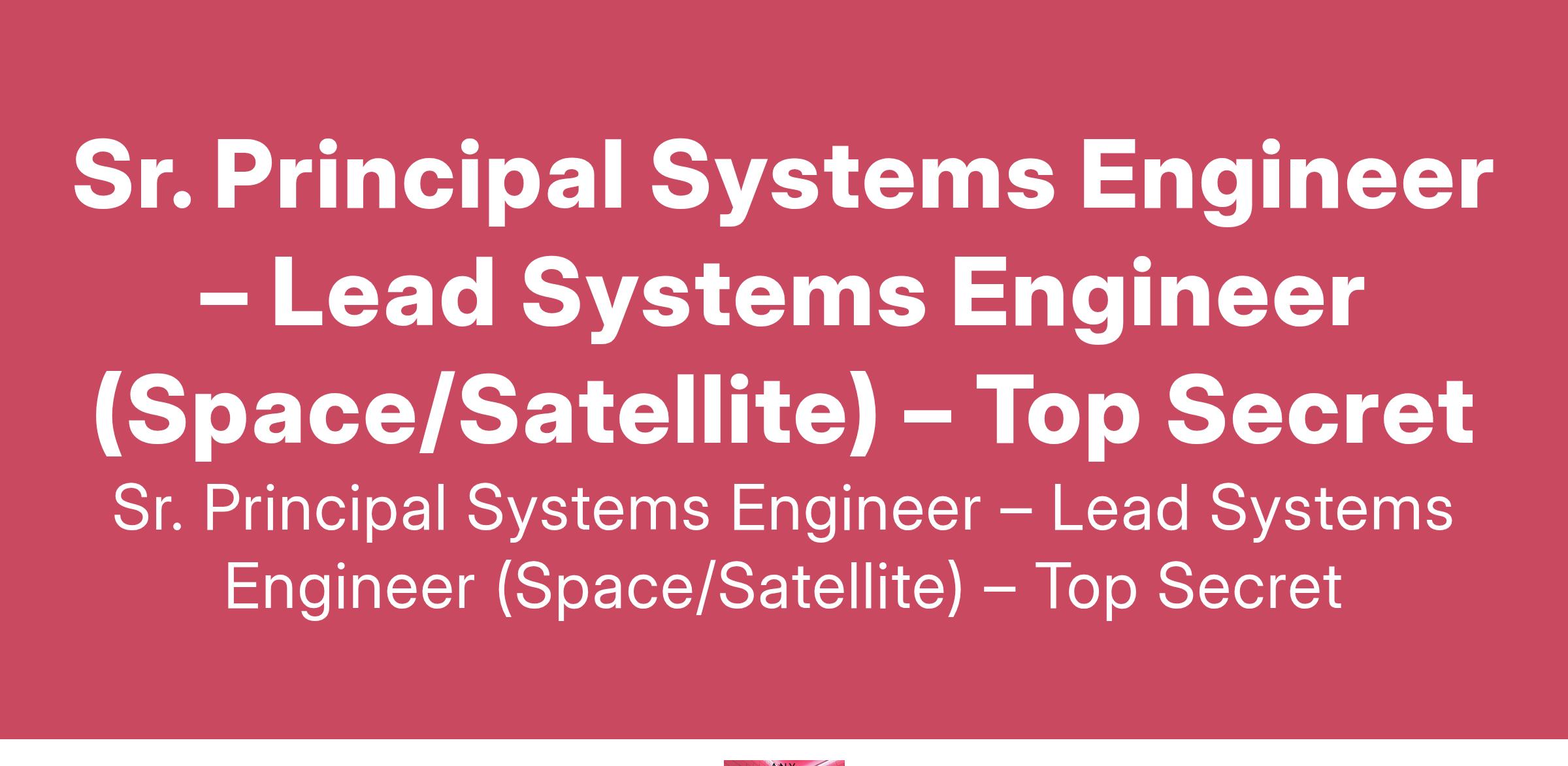 Sr. Principal Systems Engineer – Lead Systems Engineer (Space/Satellite) – Top Secret