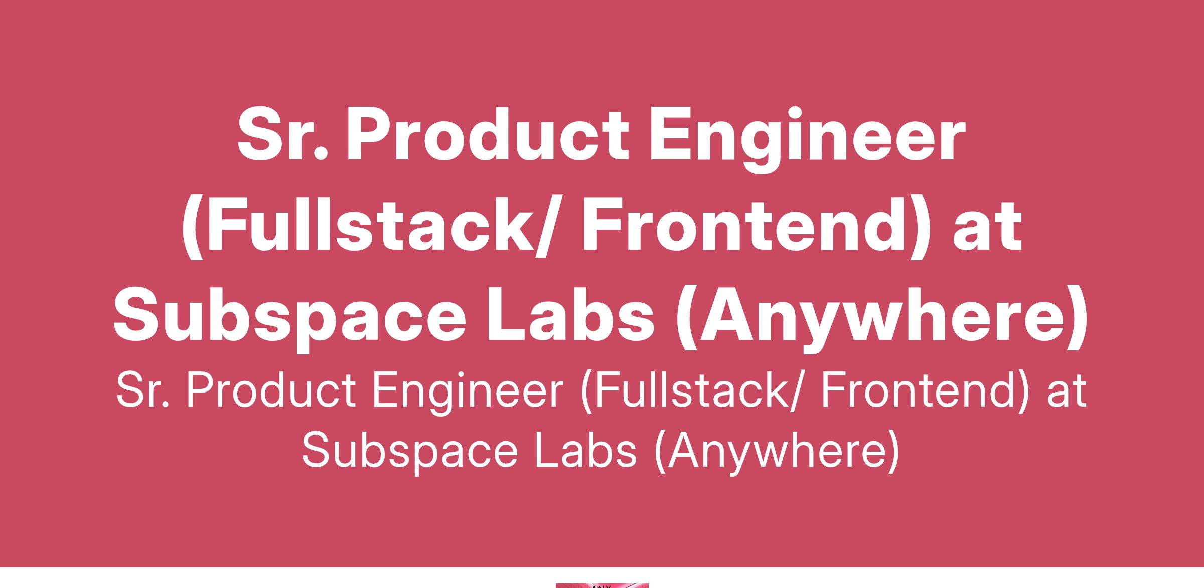 Sr. Product Engineer (Fullstack/ Frontend) at Subspace Labs (Anywhere)