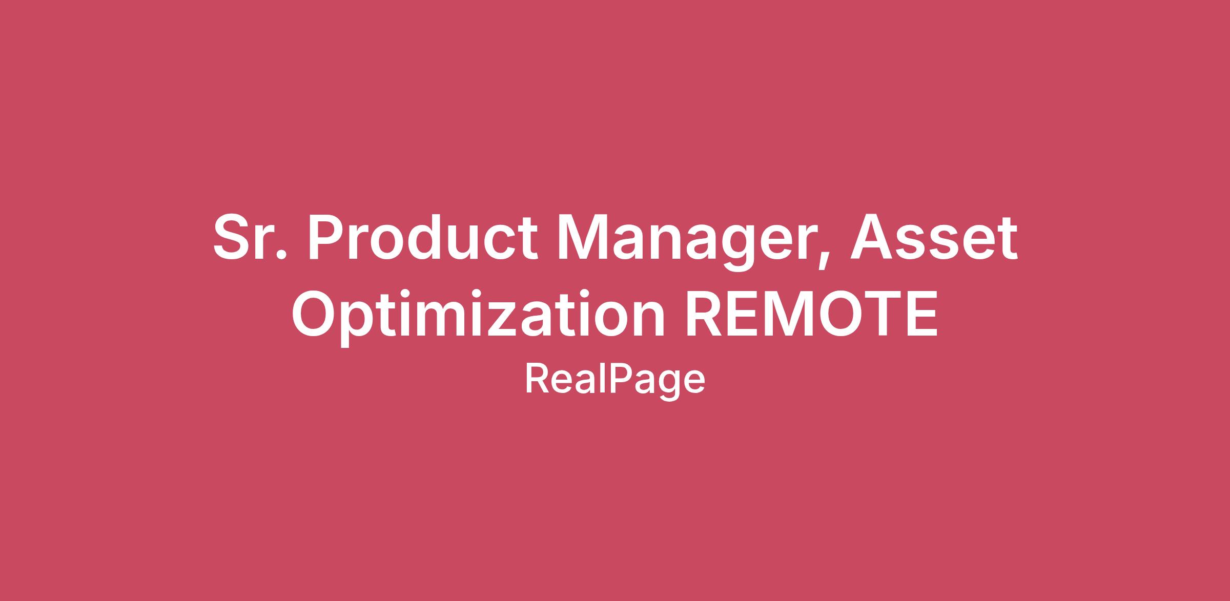 Sr. Product Manager, Asset Optimization REMOTE