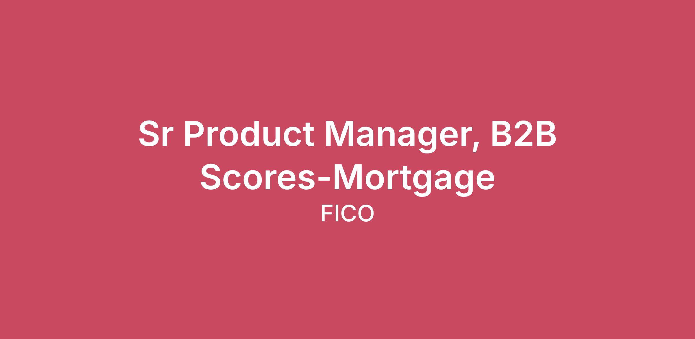 FICO (NYSE: FICO) is a leading global analytics software company, helping businesses in 100+ countries make better decisions. Join our world-class team today and fulfill your career potential!The Opportunity“For decades, the FICO® Score has maintained its status as the gold standard in credit scoring. FICO’s B2B credit scores help make fair and responsible lending possible for millions of consumers every year. As a Sr Product Manager in our B2B Scores organization supporting the U.S. and Canada, this individual contributor role will support the one-to-three year strategy, roadmap execution and support of FICO’s most critical and widely adopted product suite, our core scores, as well as the industry’s first cashflow score, UltraFICO across the Mortgage industry. You will work closely with senior product leaders and cross-functionally, collaborating closely with analytics, client services, legal, marketing and other partners to support the full product lifecycle—from strategy and development to launch, adoption, and ongoing optimization—ensuring our Scores products continue to deliver trusted, high-impact solutions to the lending industry.” B2B Scores VP Product ManagementWhat You’ll ContributeSupport market research and voice of customer initiatives to identify emerging trends, evolving client needs, and competitive dynamics that inform product direction.Synthesize intel from internal stakeholders, desktop research, and internal data sources to generate insights that shape short- and mid-term (1–3 year) product strategy and roadmap priorities, ensuring continued relevance and differentiation of FICO’s B2B Scores credit offerings.Work with key data and technology partners to support and enhance product offerings.Support external engagements, including industry events, partner/client meetings, and training sessions; responsibilities will include co-developing and delivering training program and supporting the creation of materials for speaking opportunities.Collaborate with analytics, software, and cross-functional teams to define and execute the product roadmap and go-to-market (GTM) plans.Author business and technical requirements documents, including detailed use cases and user personas, to guide development and ensure alignment with market needs.Partner with regulatory and compliance experts to ensure product designs align with applicable regulations; lead established compliance processes and deliver required documentation on schedule.What We’re SeekingBachelor’s degree in a relevant discipline such as Business, Computer Science, Engineering, or a related field (or equivalent experience preferred).Proven expertise and knowledge of financial services, credit bureau and/or alternative data ecosystems. Deep expertise in B2B product management demonstrated through a successful track record of delivery of high impact solutions and increasing leadership responsibilities.Strong attention to detail with proven ability to maintain high quality and accuracy in deliverables. Exceptional presentation and communication skills, including the ability to engage various audiences (ex: Sales, Software, Analytics, Leadership) and convey complex concepts.Intellectually curious, with a passion for continuous learning and innovation.Collaborative and low-ego approach, fostering strong relationships across teams and functions to achieve goals.Willing to do what is needed, taking on a variety of responsibilities to drive product success.Our Offer to YouAn inclusive culture strongly reflecting our core values: Act Like an Owner, Delight Our Customers and Earn the Respect of Others.The opportunity to make an impact and develop professionally by leveraging your unique strengths to advance industry leading predictive analytics such as the FICO ScoreHighly competitive compensation, benefits and rewards programs that encourage you to bring your best every day and be recognized for doing so.An engaging, people-first work environment offering work/life balance, employee resource groups, and social events to promote interaction and camaraderie.The targeted base pay range for this role is: $115,000 to $181,000 with this range reflecting differences in candidate knowledge, skills and experience. #LI-CH1#LI-RemoteWhy Make a Move to FICO?At FICO, you can develop your career with a leading organization in one of the fastest-growing fields in technology today – Big Data analytics. You’ll play a part in our commitment to help businesses use data to improve every choice they make, using advances in artificial intelligence, machine learning, optimization, and much more.FICO makes a real difference in the way businesses operate worldwide:• Credit Scoring — FICO® Scores are used by 90 of the top 100 US lenders.• Fraud Detection and Security — 4 billion payment cards globally are protected by FICO fraud systems.• Lending — 3/4 of US mortgages are approved using the FICO Score.Global trends toward digital transformation have created tremendous demand for FICO’s solutions, placing us among the world’s top 100 software companies by revenue. We help many of the world’s largest banks, insurers, retailers, telecommunications providers and other firms reach a new level of success. Our success is dependent on really talented people – just like you – who thrive on the collaboration and innovation that’s nurtured by a diverse and inclusive environment. We’ll provide the support you need, while ensuring you have the freedom to develop your skills and grow your career. Join FICO and help change the way business thinks!Learn more about how you can fulfil your potential at www.fico.com/CareersFICO promotes a culture of inclusion and seeks to attract a diverse set of candidates for each job opportunity. We are an equal employment opportunity employer and we’re proud to offer employment and advancement opportunities to all candidates without regard to race, color, ancestry, religion, sex, 