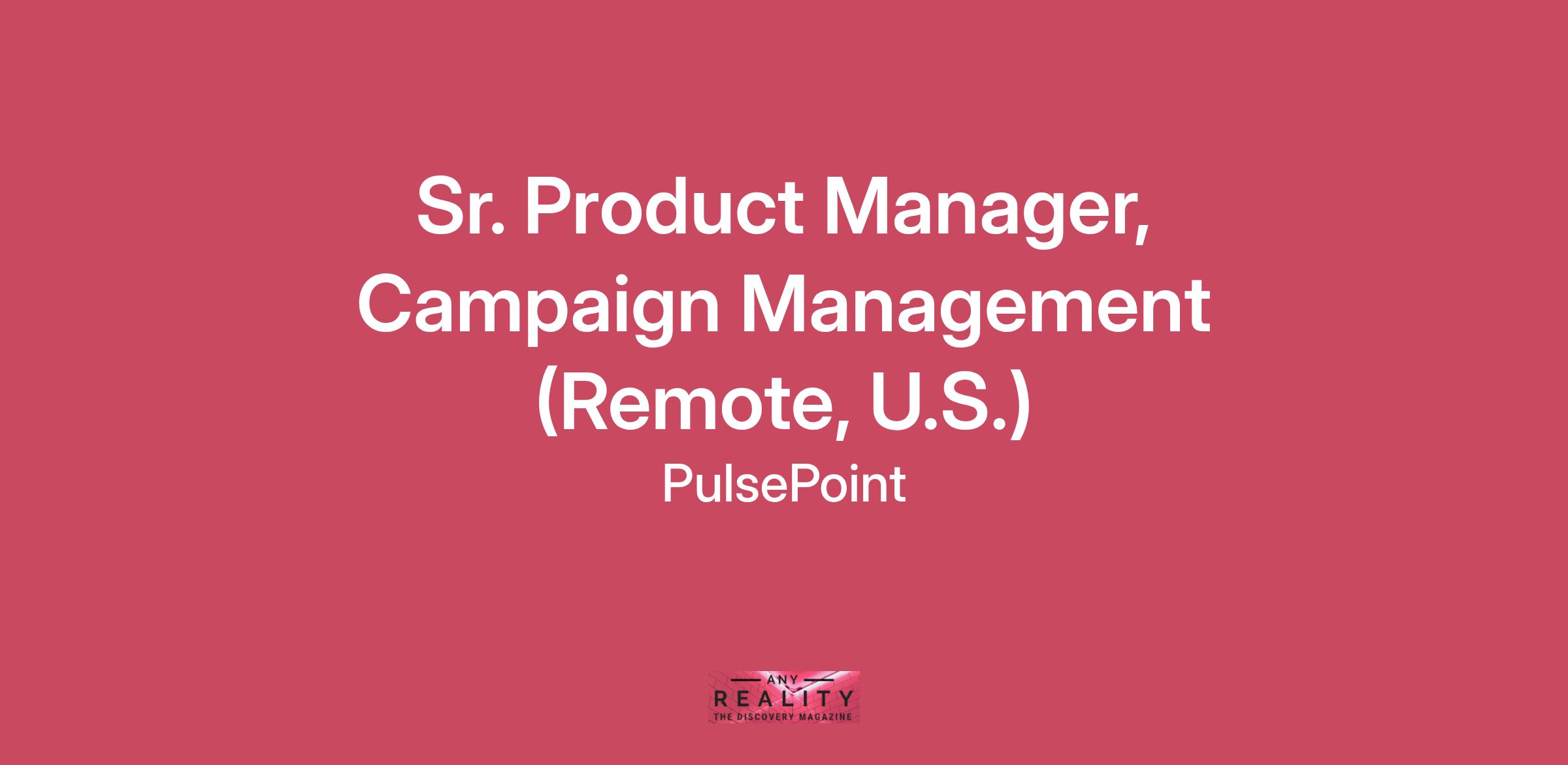 Description DescriptionThere’s likely a reason you’re reviewing this opportunity at PulsePoint. Maybe you’re looking for your next challenge, or an environment where you can make a bigger impact. If you want to join a company that takes pride in its work, invests in your career growth, and values transparent leadership, we’d love to meet you.A Bit About UsPulsePoint is a fast-growing healthcare technology company (with adtech roots) using real-time data to transform healthcare. We help brands and agencies interpret the hard-to-read signals across the health journey and unify these digital determinants of health with real-world data to produce the most dimensional view of the customer. Our award-winning advertising platforms use machine learning and programmatic automation to seamlessly activate this data, making marketing, predictive analytics, and decision support easy and instantaneous.Senior Product Manager, Campaign ManagementWe are looking for a Senior Product Manager, Campaign Management to join our brilliant Product team! Product Managers at PulsePoint relentlessly pursue increased adoption of our platforms by listening to user feedback and ideating new ways to help clients achieve their goals. They constantly monitor both market feedback and product usage to better understand how our clients use the platform today and where we can evolve to capture new opportunities. The Senior Product Manager, Campaign Management will help us expand all of PulsePoint’s offerings under one new unified Platform, taking it beyond its capabilities and pushing the boundaries of our unified omnichannel toolkit. Examples include projects in all of the following functions our clients use our platform for: research, segmentation, planning, personalization, orchestration, optimization, measurement and reporting. PulsePoint has already built the industry's leading health marketing platform, and now we’ve merged with WebMD/Medscape, creating even more opportunities to disrupt the landscape. And with the pending cookie cliff, you want to be part of a platform that has its own first-party data, not just licensing cookie pools from other people. Our teams work hard, play hard, and enjoy each other’s company during both. Come join us and help make the next evolution of health marketing become a reality!At PulsePoint, Product Managers have five primary responsibilities:Innovate and ideate with a constant focus on building new data-driven products that drive a sustained and competitive differentiation for PulsePoint in the market.Articulate the vision in a compelling business caseTranslate business strategy into the product roadmap, making critical decisions about what features to build and what order to build them inCollaborate and communicate with various technical and business teams to launch seamlessly, collecting feedback from other teams & clients and integrating that feedback back into the roadmap.And finally work with Marketing and Sales to develop compelling positioning, value proposition and selling tools.An excellent Product Manager at PulsePoint is one who keeps in mind the long-term vision of the product while driving short-term results, has the customer intuition to get there, and has the authority/integrity to lead the team along the way – very much a mini CEO when it’s done right.What you’ll be responsible for:Own and maintain the roadmap for a major product stream (DSP Campaign Management), balancing customer needs, commercial priorities, and long-term strategy.Lead end-to-end execution of key initiatives, from defining strategy and business cases through launch and adoption, ensuring alignment across multiple business units.Act as the product “CEO” for campaign workflows, making tradeoff decisions that maximize customer and company value.Communicate progress, risks, and strategic impact to executive leadership, influencing company-wide priorities where needed.Partner with Engineering, UX, Data, and Operations to ensure delivery of high-quality features, while continuously refining workflows and user experience.Represent the product internally and externally, supporting Marketing and Sales in positioning and engaging with clients and partners.Mentor and support junior PMs, helping to build a strong, scalable product management practice.What you’ll accomplish:Propel the PulsePoint Platform in two or more omnichannel functions.Increase integration and adoption of MedScape/WebMD tools and offerings into the PulsePoint Platform.Gain trust of key business stakeholders.Ability to fully lead projects from start to finish.What success looks like:Roadmap clarity and alignment across leadership and stakeholders.Increased adoption and retention driven by clear improvements in campaign management workflows.Recognition as the internal and external expert on DSP campaign management.Delivery of cross-functional initiatives that drive measurable impact for clients and revenue growth for PulsePoint.How your success will be measured:Retention rate of clientsNPS scoresNew feature adoptionSuccessful planning and execution of projects across multiple business unitsWhat we’re looking for:6+ years product management experience in adtech, with at least 3 years directly on DSP or campaign management workflows.Programmatic platform (DSP, DMP, or ad server) experience required.Analytical approach to UX & SaaS enhancements and revenue-focused roadmap planning.Health experience a plus.Experience with at least one of the following a plus: CTV, paid search, social, email, YouTube.Location:You can work remotely anywhere in the U.S.What we’ll give to you:Comprehensive healthcare with medical, dental, and vision options, and 100%-paid life & disability insurance401(k) MatchGenerous paid vacation and sick timePaid parental leave & adoption assistanceAnnual tuition assistanceBetter Yourself Wellness programGroup volunteer opportunities and fun eventsA referral bonus program -- we love hiring referrals 