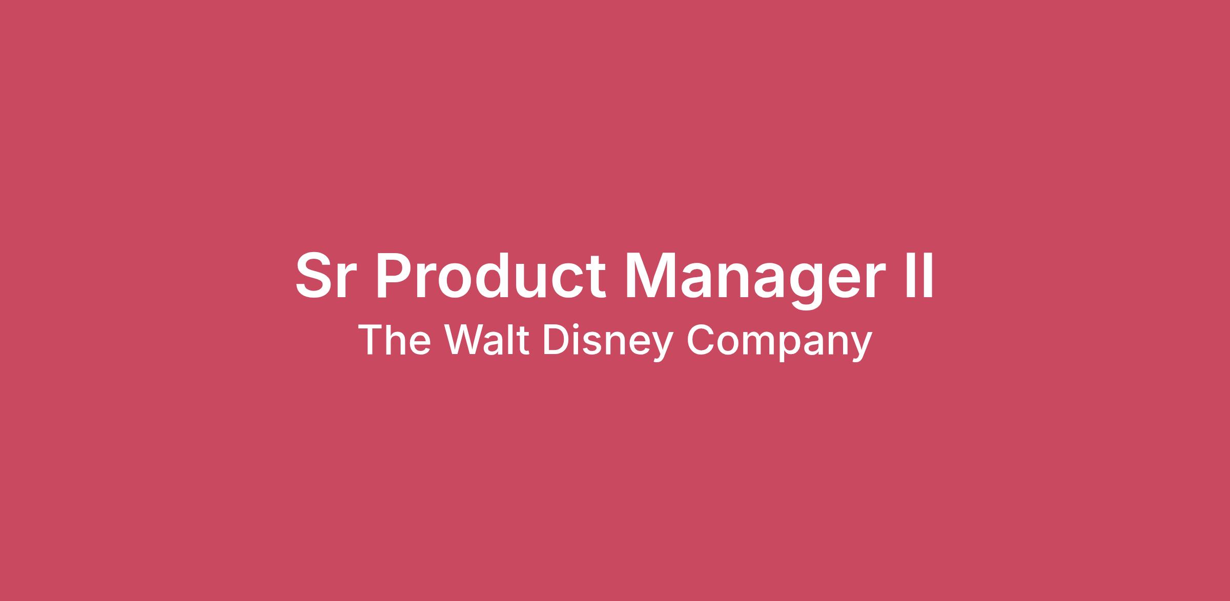 Job Posting Title:Sr Product Manager IIReq ID:10145211Job Description:Department/Group Overview:Disney Entertainment and ESPN Product & TechnologyTechnology is at the heart of Disney’s past, present, and future. Disney Entertainment and ESPN Product & Technology is a global organization of engineers, product developers, designers, technologists, data scientists, and more – all working to build and advance the technological backbone for Disney’s media business globally.The team marries technology with creativity to build world-class products, enhance storytelling, and drive velocity, innovation, and scalability for our businesses. We are Storytellers and Innovators. Creators and Builders. Entertainers and Engineers. We work with every part of The Walt Disney Company’s media portfolio to advance the technological foundation and consumer media touch points serving millions of people around the world. Here are a few reasons why we think you’d love working here:1. Building the future of Disney’s media: Our Technologists are designing and building the products and platforms that will power our media, advertising, and distribution businesses for years to come.2. Reach, Scale & Impact: More than ever, Disney’s technology and products serve as a signature doorway for fans' connections with the company’s brands and stories. Disney+. Hulu. ESPN. ABC. ABC News…and many more. These products and brands – and the unmatched stories, storytellers, and events they carry – matter to millions of people globally. 3. Innovation: We develop and implement groundbreaking products and techniques that shape industry norms, and solve complex and distinctive technical problems.Content Platforms & Operations is responsible for the development and ongoing advancement of the technical and operational functions driving the worldwide distribution and monetization of Disney’s linear networks and theatrical content. This includes Disney’s media supply chain and storage, network and theatrical distribution operations, media localization, network transmission and origination, and more. The global team also plays a critical role as the primary collaboration point for Product & Technology with Disney’s EMEA, APAC, and LATAM regional business teams.Job Summary:The Content Platforms’ Avails Team is seeking a Sr Product Manager II to lead the development, execution, and long-term success of products that enable the global rights distribution of The Walt Disney Company’s world-class content through licensing partner channels. In this role, you will help shape the future of the content supply chain that powers Disney’s content distribution worldwide.Serving as a strategic bridge between business stakeholders, design, and engineering, you will define product vision and strategy, translate customer and partner needs into scalable product capabilities, and guide cross-functional teams to deliver high-impact solutions. You will collaborate closely with engineering, design, and key partners to reimagine how technology can be leveraged to drive the next evolution of our business.This role demands strong analytical thinking, deep user empathy, and the ability to prioritize effectively across innovation, business value, and technical feasibility. Success requires thriving in a fast-paced, highly collaborative environment, with a strong attention to detail and a bias toward execution.Responsibilities and Duties of the Role:Utilize modern product discovery methods to gain a deep understanding of the problem space and develop solutions leveraging those insightsEstablish and evangelize product strategies that align with the mission of our organization and create value for our businessLead business partner engagements to analyze the value proposition of business requests and provide alternative solutions, as needed to ensure we stay consistently focused on the product strategyOwn definition of cost/benefit analysis and prepare lean business caseActively collaborate with team members in engineering, design, and other domains to create products that offer long-term value for our businessBe accountable for the successful delivery of product solutions and their subsequent performanceEstablish and drive towards realistic product targets (OKRs)Active use of product frameworks and tools to document information in a structured way (user journey maps, flow, information architecture, etc.)Manage maintenance and prioritization of product backlog, ensuring transparent, well aligned & justified prioritization within your area of responsibilityKey participant of daily scrum meetings, planning, reviews, and retrospectivesCoordinate major product releasesOwn system processes, user guides, and training materials on product features where needed.Assist in process alignment and standardizationDevelop and nurture cross-domain relationships built on mutual trust and respectCreate an environment that inspires passion and innovationMentor and invest in the growth of other team membersSeek out learning opportunities and share valuable insights with your teammatesDevelop deep expertise and provide thought leadership in your product areaRequired Education, Experience/Skills/Training:Basic Qualifications 7+ years of product management experience, preferably within digital and/or mobile platformsStrong product acumen with deep platform knowledge and technical fluencyProven track record of building, launching, and scaling products that deliver business value and align with organizational missionHighly self-motivated, able to work autonomously under tight timelines while consistently meeting deadlinesExceptional presentation skills with the ability to clearly communicate objectives, progress, risks, and outcomes to diverse audiencesStrong research capabilities, translating insights into actionable recommendations or alternative solutionsExpertise in problem discovery, definition, and validationDemonstrated ability to define, own, and execut