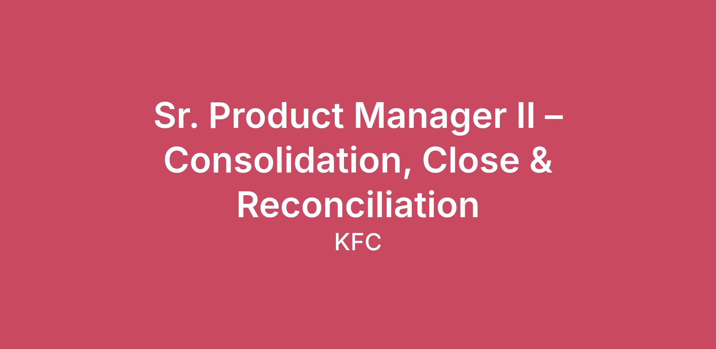 DescriptionWe are seeking a talented and experienced Sr. Product Manager to join our dynamic team in the ITSS L11 Below department. In this role, you will play a crucial part in driving the development and implementation of our Oracle EPM Cloud FCCS platform, specifically in the areas of consolidation, close, and reconciliation. Your expertise will be instrumental in enhancing our financial reporting processes and ensuring compliance with industry standards.ResponsibilitiesDefine and maintain product vision, strategy, and roadmap for consolidation and reconciliation capabilities.Collaborate with finance and Controls team to gather requirements and prioritize backlog.Drive adoption of agile practices within the fusion team and ensure alignment with enterprise standards.Oversee feature delivery aligned with financial close milestones and compliance requirements.Monitor product performance, identify improvement opportunities, and implement enhancements.QualificationsBachelor’s degree in Finance, Accounting, Information Systems, or related field.Strong knowledge of financial consolidation and reconciliation processes.Experience with financial systems and working closely with Control teams.Experience with Oracle EPM Cloud (FCCS) or similar platforms.Proven ability to lead cross-functional teams in an agile environment.Excellent communication and stakeholder management skills.Preferred Qualifications:Experience in global enterprise environments.Familiarity with SOX compliance and internal controls.Agile certification (CSPO, SAFe PO/PM) preferred. Salary Range: $121,600 - $135,755 annually + eligible bonusBenefits: Employees (and their eligible family members) may enroll in the following types of insurance coverage: medical, dental, vision, legal, and accidental death and dismemberment, as well as FSA/HSA (depending on enrolled medical plan). Yum! also provides short-term disability, long-term disability, and life insurance. Employees may enroll in our 401(k) plan. Yum! provides 4 weeks of vacation, paid sick leave, 10 paid holidays, a floating day off and 2 paid days for volunteer time each calendar year. To learn more about working at Yum! -Click here. At Yum!, one of our core values is to Believe in ALL People. This means seeing the value in everyone and unlocking their full potential to be their best self. YUM! Brands, Inc. (including its subsidiaries Yum Restaurant Services Group, LLC (“YRSG”) and Yum Connect, LLC (“Yum Digital and Technology”)(collectively, “Yum”) is proud to be an equal opportunity employer and is committed to equity, inclusion, and belonging for all dimensions of diversity. We do not discriminate based on race, color, religion, sex, sexual orientation, gender identity, national origin, veteran status, disability status, age, or any other protected characteristic. Yum! is committed to working with and providing reasonable accommodation to applicants with disabilities or special needs.US Job Seekers/Employees - Click here to view the “Know Your Rights” poster and supplement and the Pay Transparency Policy Statement.