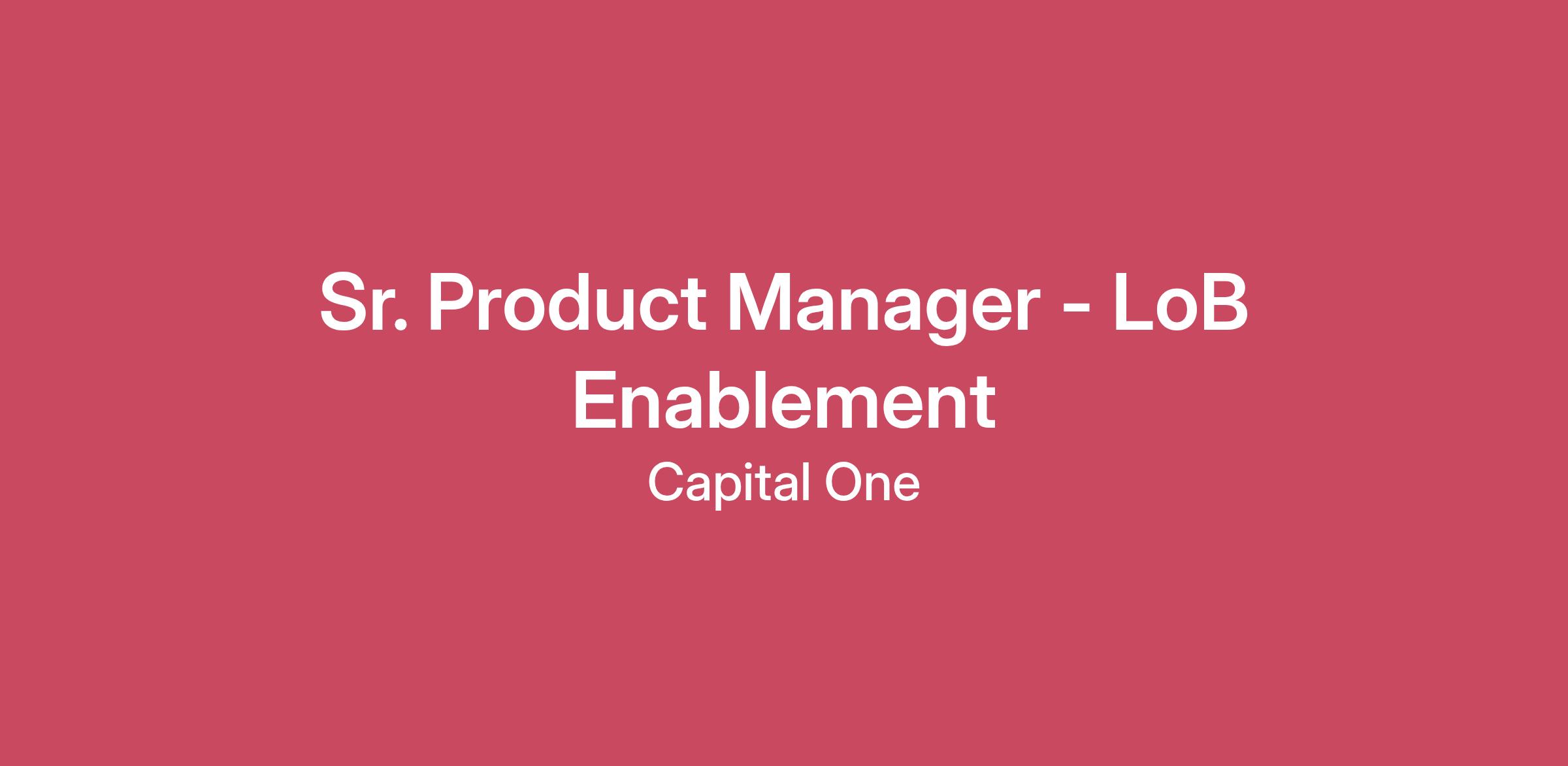Sr. Product Manager - LoB EnablementSenior Manager, Product Management (PXDP55)Product Management at Capital One is a booming, vibrant craft that requires reimagining the status quo, finding value creation opportunities, and driving innovative and sustainable customer experiences through technology. We believe our portfolio of businesses and investments in growth and transformation will result in a company with the scale, brand, capabilities, talent, and values to succeed as the digital revolution transforms our society and our industry.About the Team We are strategic and dynamic product managers to lead finance transformation initiatives and drive the product evolution for our financial products. These roles will focus on rolling product led thinking in finance, streamlining operation and implementing innovative solutions that improves efficiency and business performance for our finance organization. You will collaborate with cross functional teams including finance, engineering and data to deliver impactful product improvement and strategic initiatives.Capital One Product FrameworkIn this role, you’ll be expected to demonstrate proficiency in five key areas which we consider to be the foundation for successful Product management:Human Centered - Obsesses about internal and external customer needs to reimagine and innovate product solutionsBusiness Focused - Delivers game-changing outcomes by focusing on leverage and execution excellenceTechnology Driven - Leverages technology to deliver innovative and resilient solutions that enable both near term and long term valueIntegrated Problem Solving - Identifies and resolves complex problems to deliver outcomes while mitigating product risks Transformational Leadership - Leads cross functional teams to solve customer problems and drive organizational alignmentBasic Qualifications:At least 5 years of experience working in Product ManagementCurrently has, or is in the process of obtaining one of the following with an expectation that the required degree will be obtained on or before the scheduled start date: A Bachelor's Degree in a quantitative field (Statistics, Economics, Operations Research, Analytics, Mathematics, Computer Science, Computer Engineering, Software Engineering, Mechanical Engineering, Information Systems or a related quantitative field)A Master's Degree in a quantitative field (Statistics, Economics, Operations Research, Analytics, Mathematics, Computer Science, Computer Engineering, Software Engineering, Mechanical Engineering, Information Systems or a related quantitative field) or an MBA with a quantitative concentrationPreferred Qualifications:Experience translating business strategy and analysis into consumer facing digital productsAt this time, Capital One will not sponsor a new applicant for employment authorization for this position.The minimum and maximum full-time annual salaries for this role are listed below, by location. Please note that this salary information is solely for candidates hired to perform work within one of these locations, and refers to the amount Capital One is willing to pay at the time of this posting. Salaries for part-time roles will be prorated based upon the agreed upon number of hours to be regularly worked.Richmond, VA: $175,500 - $200,300 for Sr. Mgr, Product Management Cambridge, MA: $193,000 - $220,300 for Sr. Mgr, Product Management McLean, VA: $193,000 - $220,300 for Sr. Mgr, Product Management Candidates hired to work in other locations will be subject to the pay range associated with that location, and the actual annualized salary amount offered to any candidate at the time of hire will be reflected solely in the candidate’s offer letter.This role is also eligible to earn performance based incentive compensation, which may include cash bonus(es) and/or long term incentives (LTI). Incentives could be discretionary or non discretionary depending on the plan.Capital One offers a comprehensive, competitive, and inclusive set of health, financial and other benefits that support your total well-being. Learn more at the Capital One Careers website. Eligibility varies based on full or part-time status, exempt or non-exempt status, and management level.This role is expected to accept applications for a minimum of 5 business days.No agencies please. Capital One is an equal opportunity employer (EOE, including disability/vet) committed to non-discrimination in compliance with applicable federal, state, and local laws. Capital One promotes a drug-free workplace. Capital One will consider for employment qualified applicants with a criminal history in a manner consistent with the requirements of applicable laws regarding criminal background inquiries, including, to the extent applicable, Article 23-A of the New York Correction Law; San Francisco, California Police Code Article 49, Sections 4901-4920; New York City’s Fair Chance Act; Philadelphia’s Fair Criminal Records Screening Act; and other applicable federal, state, and local laws and regulations regarding criminal background inquiries.If you have visited our website in search of information on employment opportunities or to apply for a position, and you require an accommodation, please contact Capital One Recruiting at 1-800-304-9102 or via email at RecruitingAccommodation@capitalone.com. All information you provide will be kept confidential and will be used only to the extent required to provide needed reasonable accommodations.For technical support or questions about Capital One's recruiting process, please send an email to Careers@capitalone.comCapital One does not provide, endorse nor guarantee and is not liable for third-party products, services, educational tools or other information available through this site.Capital One Financial is made up of several different entities. Please note that any position posted in Canada is for Capital One Canada, any position posted in the United Kingdom is for Capital One Europe and any positi