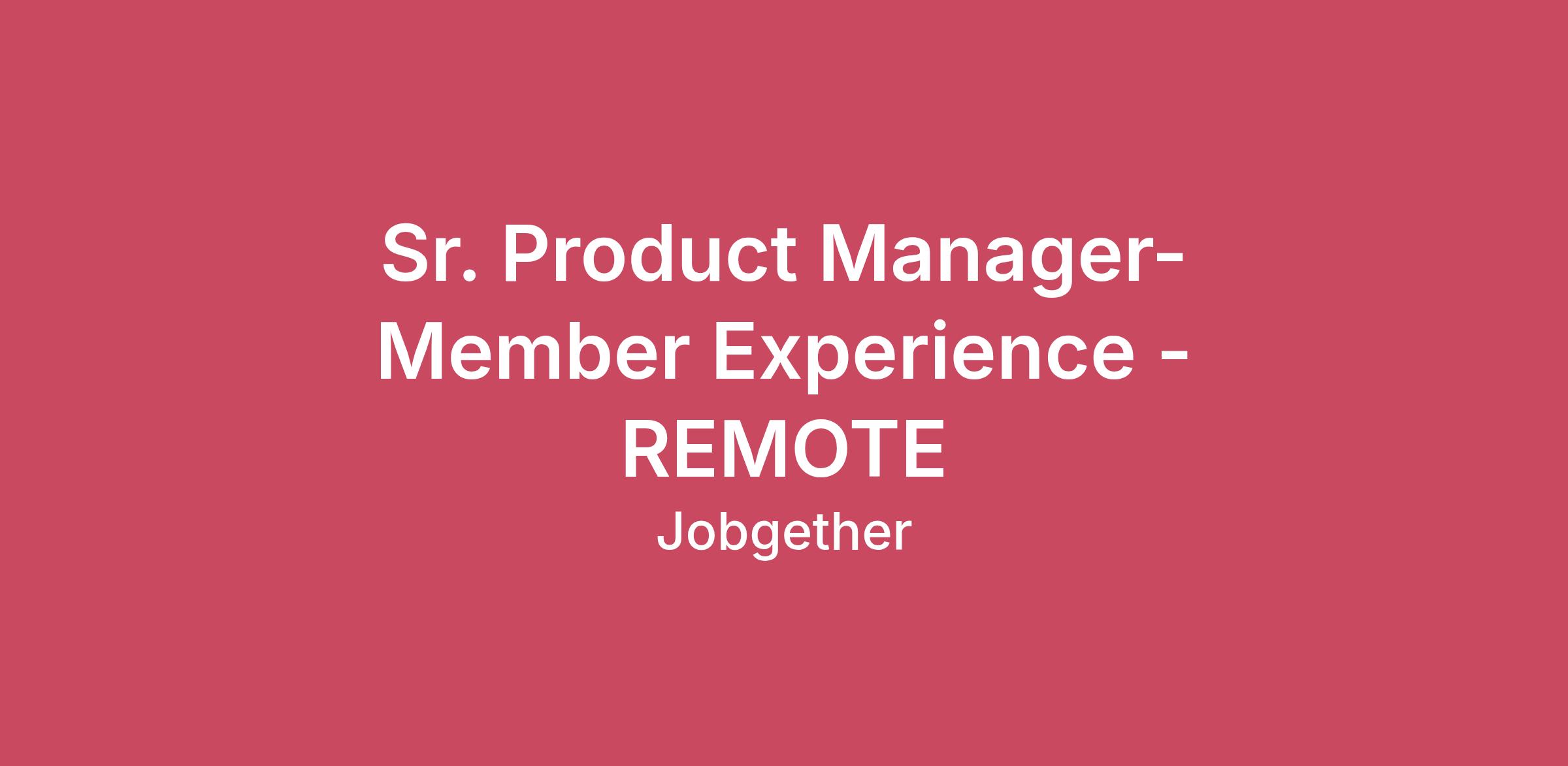 Sr. Product Manager- Member Experience - REMOTE