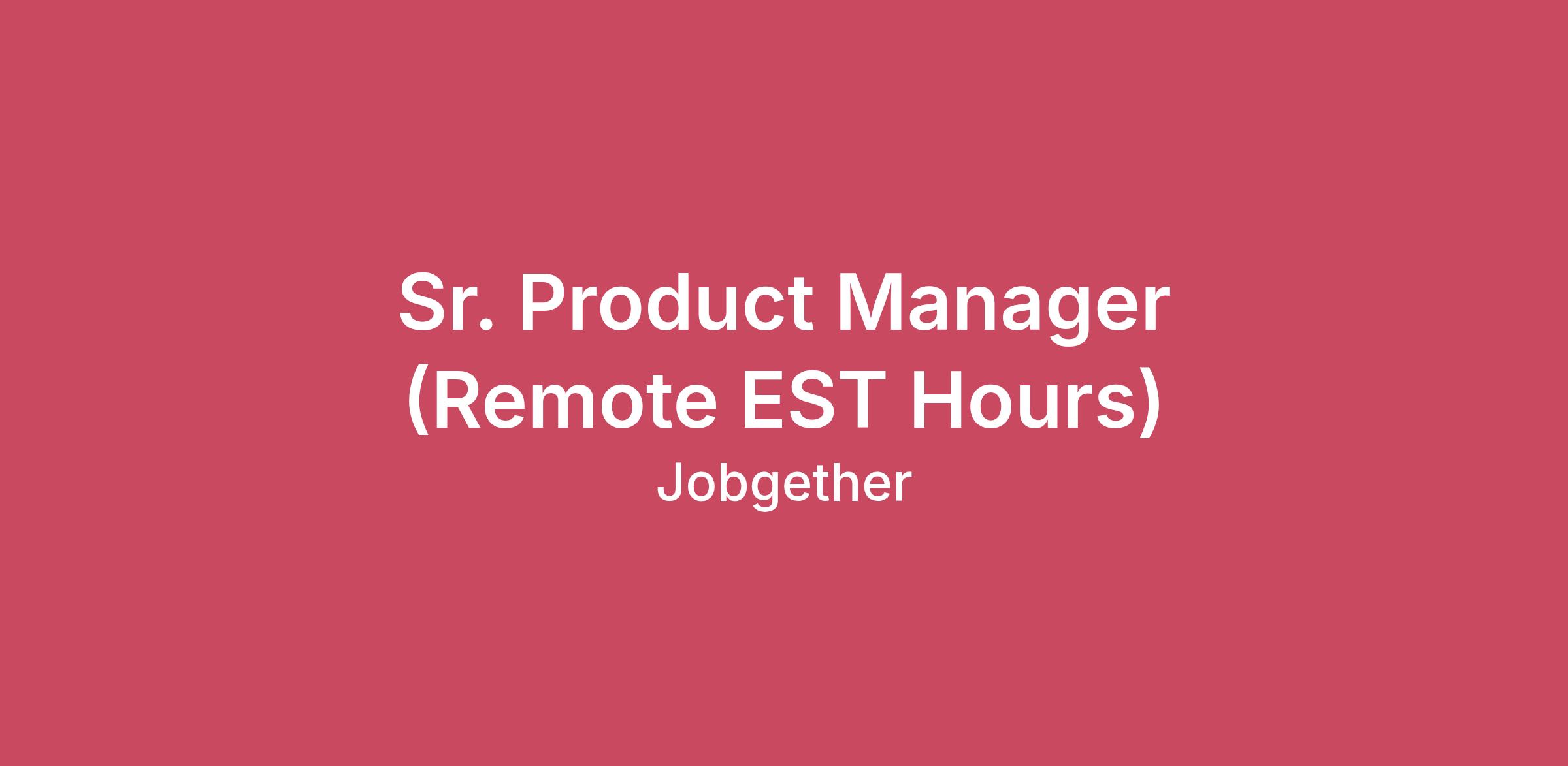 Sr. Product Manager (Remote EST Hours)