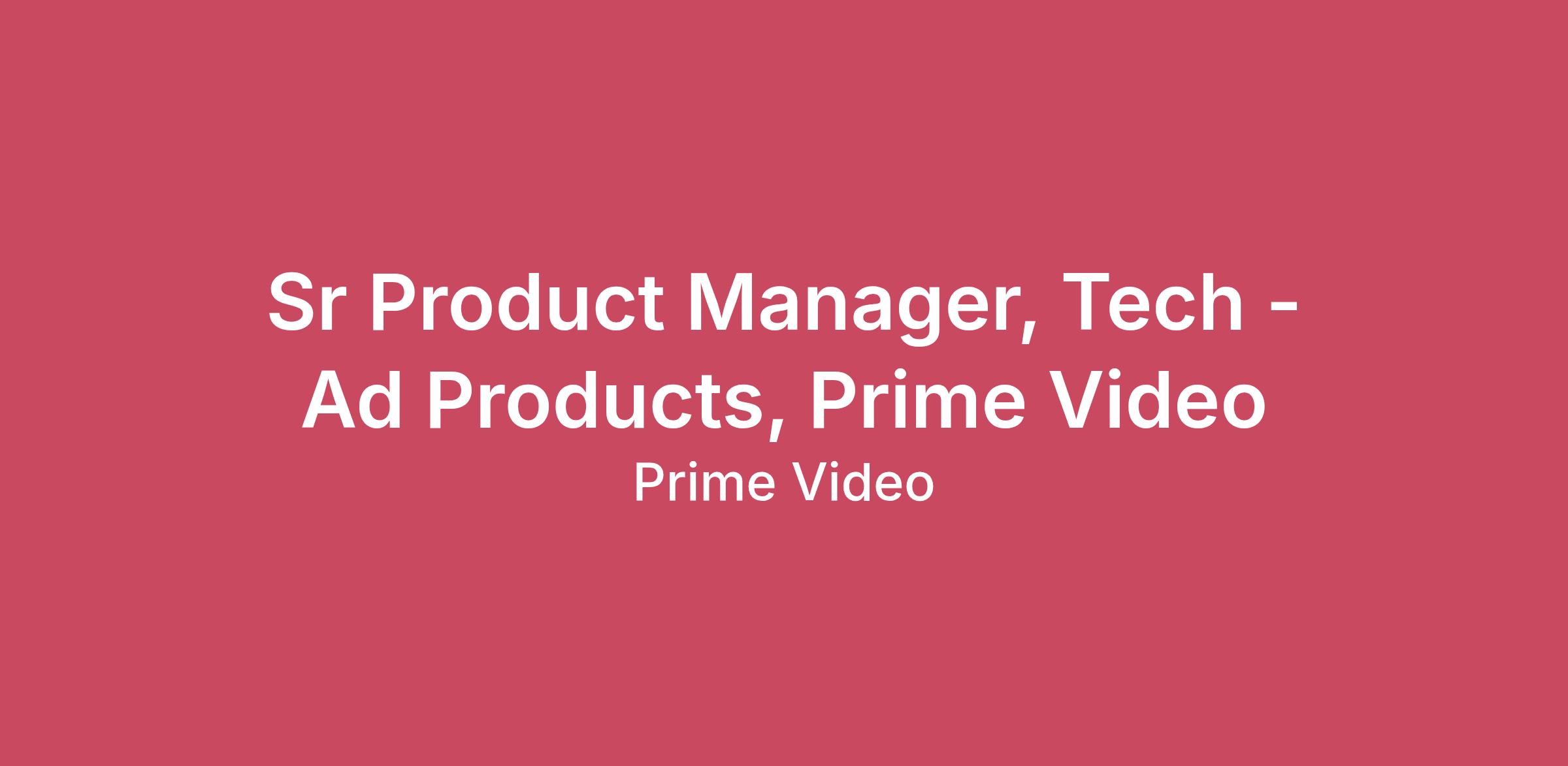Prime Video is a first-stop entertainment destination offering customers a vast collection of premium programming in one app available across thousands of devices. Prime members can customize their viewing experience and find their favorite movies, series, documentaries, and live sports – including Amazon MGM Studios-produced series and movies; licensed fan favorites; and programming from Prime Video add-on subscriptions such as Apple TV+, Max, Crunchyroll and MGM+. All customers, regardless of whether they have a Prime membership or not, can rent or buy titles via the Prime Video Store, and can enjoy even more content for free with ads.Are you interested in shaping the future of entertainment? Prime Video's technology teams are creating best-in-class digital video experience.As a Prime Video technologist, you’ll have end-to-end ownership of the product, user experience, design, and technology required to deliver state-of-the-art experiences for our customers. You’ll get to work on projects that are fast-paced, challenging, and varied. You’ll also be able to experiment with new possibilities, take risks, and collaborate with remarkable people.We’ll look for you to bring your diverse perspectives, ideas, and skill-sets to make Prime Video even better for our customers. With global opportunities for talented technologists, you can decide where a career Prime Video Tech takes you!Prime Video is looking for a world-class product leader to help define and launch new digital advertising solutions that will change how advertisers engage with consumers via streaming media around the world.We are looking for passionate and talented product leaders, with a track record in building new customer experiences and in advertising, to help drive innovation and foster nascent ideas and products into scalable programs. As a Principal Product Manager, you will invent, improve and drive Prime Video ad products from end to end, to surprise and delight both customers and advertisers alike.You’ll own the user experience, design, and technology required to deliver state-of-the-art experiences for our customers, and you will take a key roll in determining how we commercialize it for advertisers. You’ll get to work on projects that are fast-paced, challenging, and varied. You’ll also be able to experiment with new possibilities, take risks, and collaborate with remarkable people.We’ll look for you to bring your diverse perspectives, ideas, and skill-sets to make Prime Video even better for our customers. With global opportunities for talented technologists, you can decide where a career Prime Video Tech takes you!Key job responsibilities- Develop and execute on the long-term strategy for global ad products in Prime Video, focusing on sponsorships' viewer experience.- Lead or critically influence planning and execution of all aspects of implementation of your products, including product, engineering, and go-to-market.- Work across multiple organizations to align on and achieve objectives.- Build and drive internal and external partnerships with key stakeholders to foster best-in-class product vision.- Build and scale profitable programs for Prime Video.A day in the lifeSuccessful candidates will demonstrate product leadership skills by fostering cross-team collaboration with business, technical and design counterparts. You will demonstrate your proficiency in addressing viewer, customer needs and business needs, and launch high impact products and services that satisfy Prime Video customers and drive business success with advertisers. You must have strong business judgement, customer obsession and be technical with a passion for streaming and digital advertising. You must be able to thrive and succeed in an entrepreneurial environment and not be hindered by ambiguity. This means you are not only able to develop and drive high-level strategic initiatives, but can also roll up your sleeves and get the job done. You leverage mental models and data-driven decision making, and can effectively communicate verbally, and in writing, with leaders of all levels. As a leader on the team, you will take on product management opportunities with autonomy and high visibility. You will deliver recommendations to senior executives and drive alignment across levels, functions, and organizations.- Experience owning/driving roadmap strategy and definition- Experience with feature delivery and tradeoffs of a product- Experience contributing to engineering discussions around technology decisions and strategy related to a product- Experience in representing and advocating for a variety of critical customers and stakeholders during executive-level prioritization and planning- Experience in technical product management, program management or engineering- Experience with end to end product delivery- Experience in using analytical tools, such as Tableau, Qlikview, QuickSight- Experience in building and driving adoption of new tools- Bachelor's degree in computer science, engineering, analytics, mathematics, statistics, IT or equivalentAmazon is an equal opportunity employer and does not discriminate on the basis of protected veteran status, disability, or other legally protected status.Our inclusive culture empowers Amazonians to deliver the best results for our customers. If you have a disability and need a workplace accommodation or adjustment during the application and hiring process, including support for the interview or onboarding process, please visit https://amazon.jobs/content/en/how-we-hire/accommodations for more information. If the country/region you’re applying in isn’t listed, please contact your Recruiting Partner.The base salary range for this position is listed below. Your Amazon package will include sign-on payments and restricted stock units (RSUs). Final compensation will be determined based on factors including experience, qualifications, and location. Amazon also offers comprehensive benefits includ